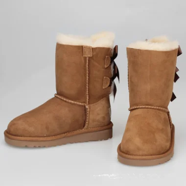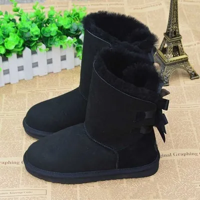 Factory Wholesale JM JM1 Lightweight Anti Slip Warm Double Ribbon Thick Bottom Sheepskin Lining Midi Winter Women's Snow Boots