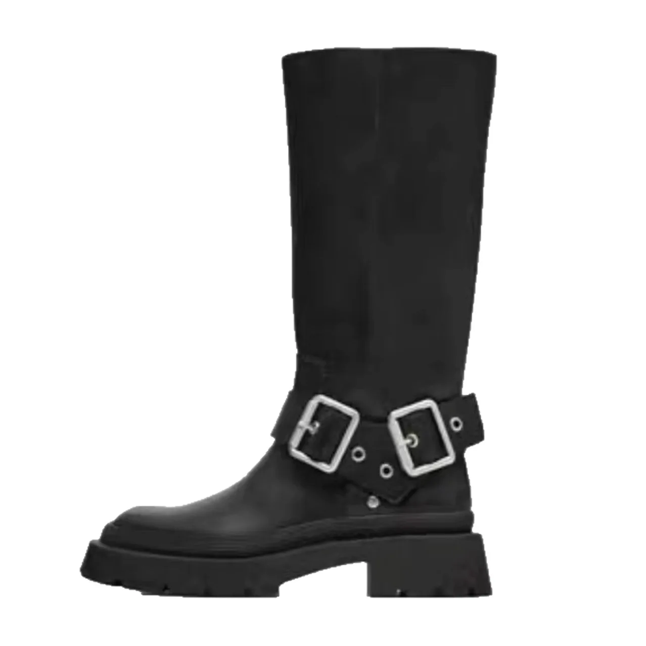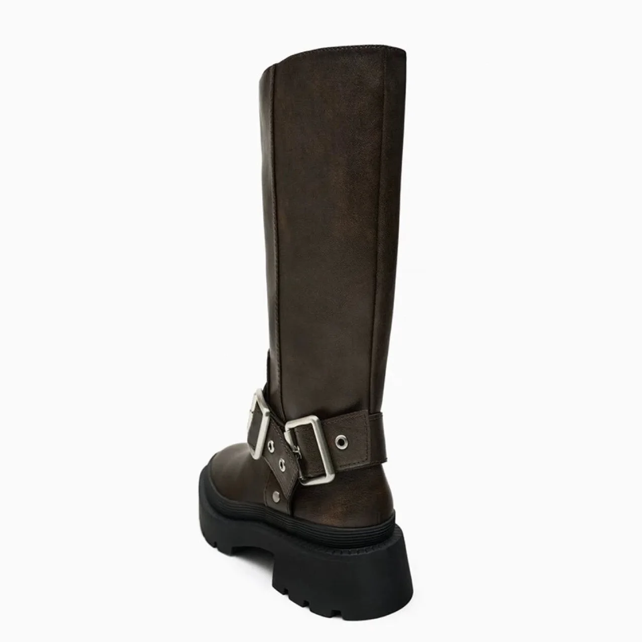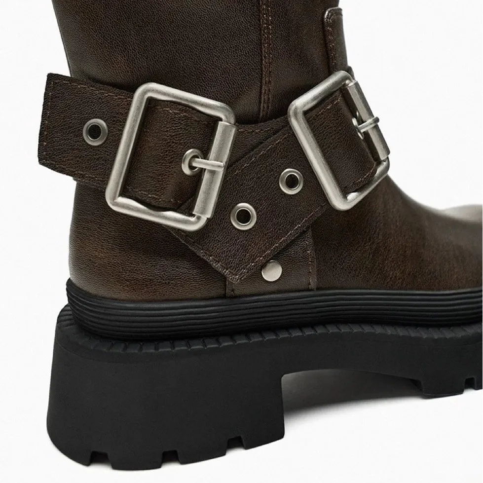 Thick-heeled Calf Boots for Women 2026 Autumn New Collection Brown Retro Height-increasing Buckle Knight Thick-soled Boots
