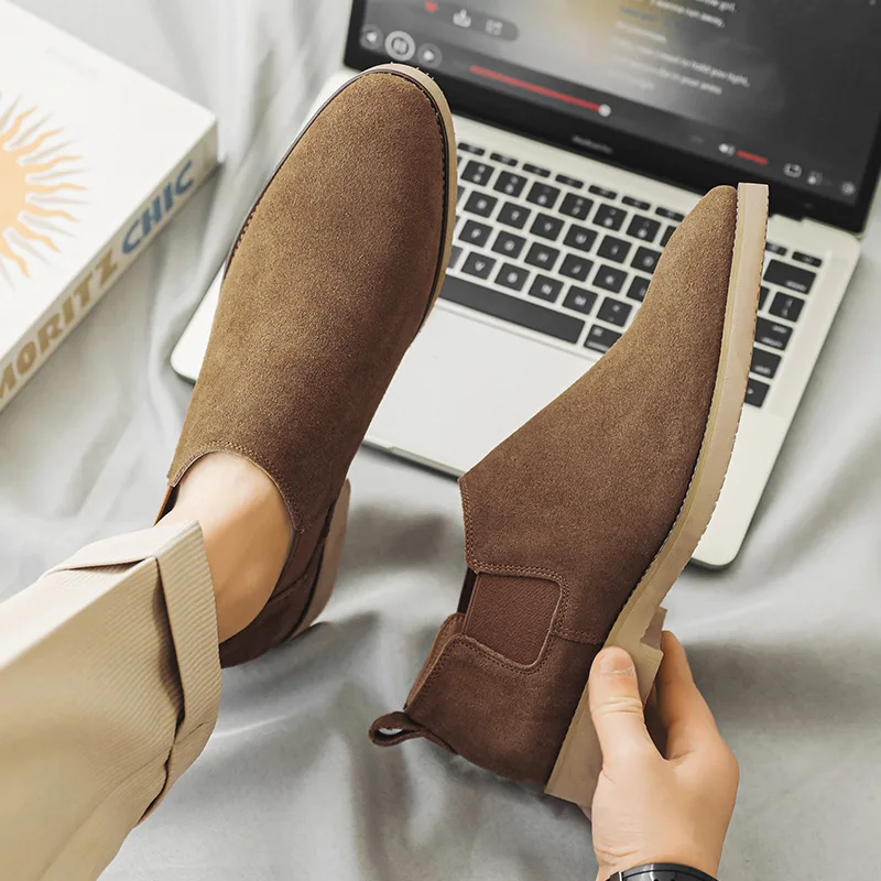 Men's New Matte Chelsea Boots Breathable Minimalist Design British Style Pointed Casual Leather Height Increasing Soft