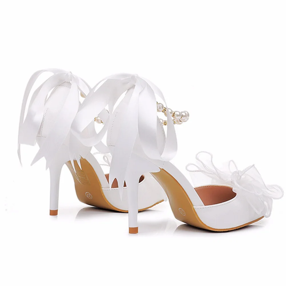 2026 New French Romance Women's 5cm 7cm 9.5cm High Thin Heels Elegant White Pointed Toe Buckle Strap Summer Wedding Shoes