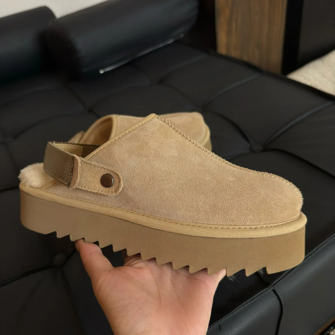 High-quality New Fashion Half Drag Female Sheepskin Thick Sole Sandals Couple Shoes Winter Anti-Slippery Slippers