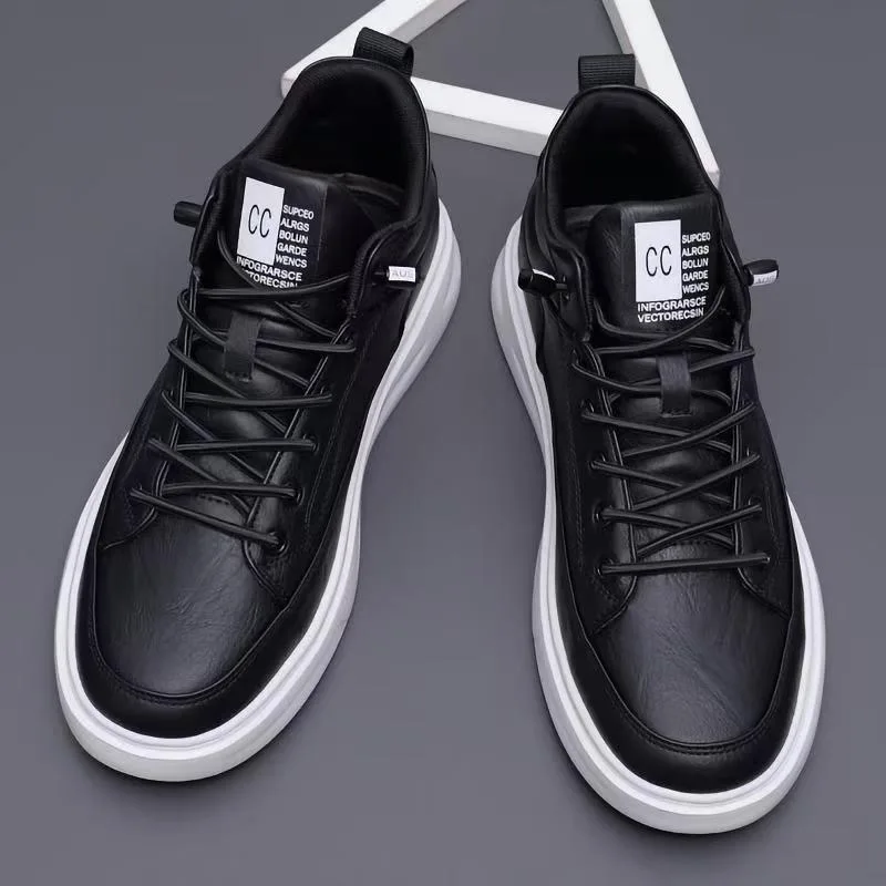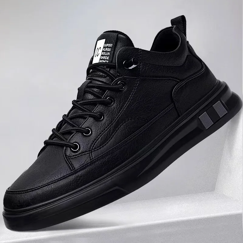 New Autumn Winter Mens Black PU Leather Mesh Fashion Trend Casual Sneakers Waterproof Non Slip Breathable Sport Running Shoes