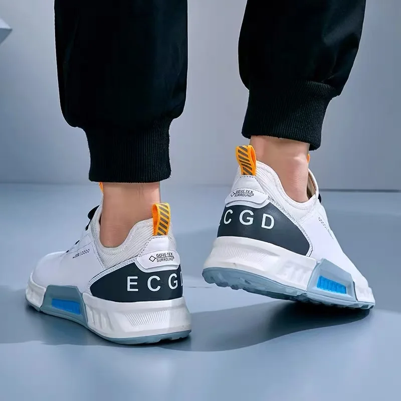 Men's Sporty Casual Golf Shoes Genuine Leather Non-Slip Fixed Sports Lace-Up Closure Lightweight Soft Fashion Trend