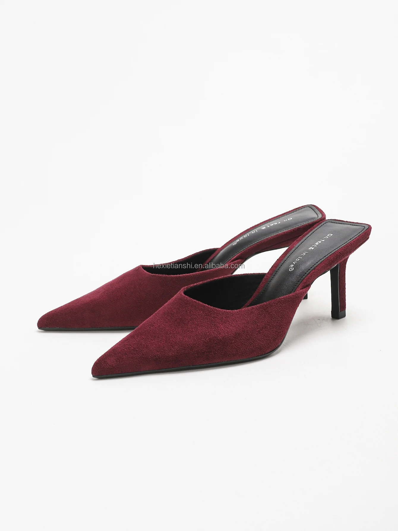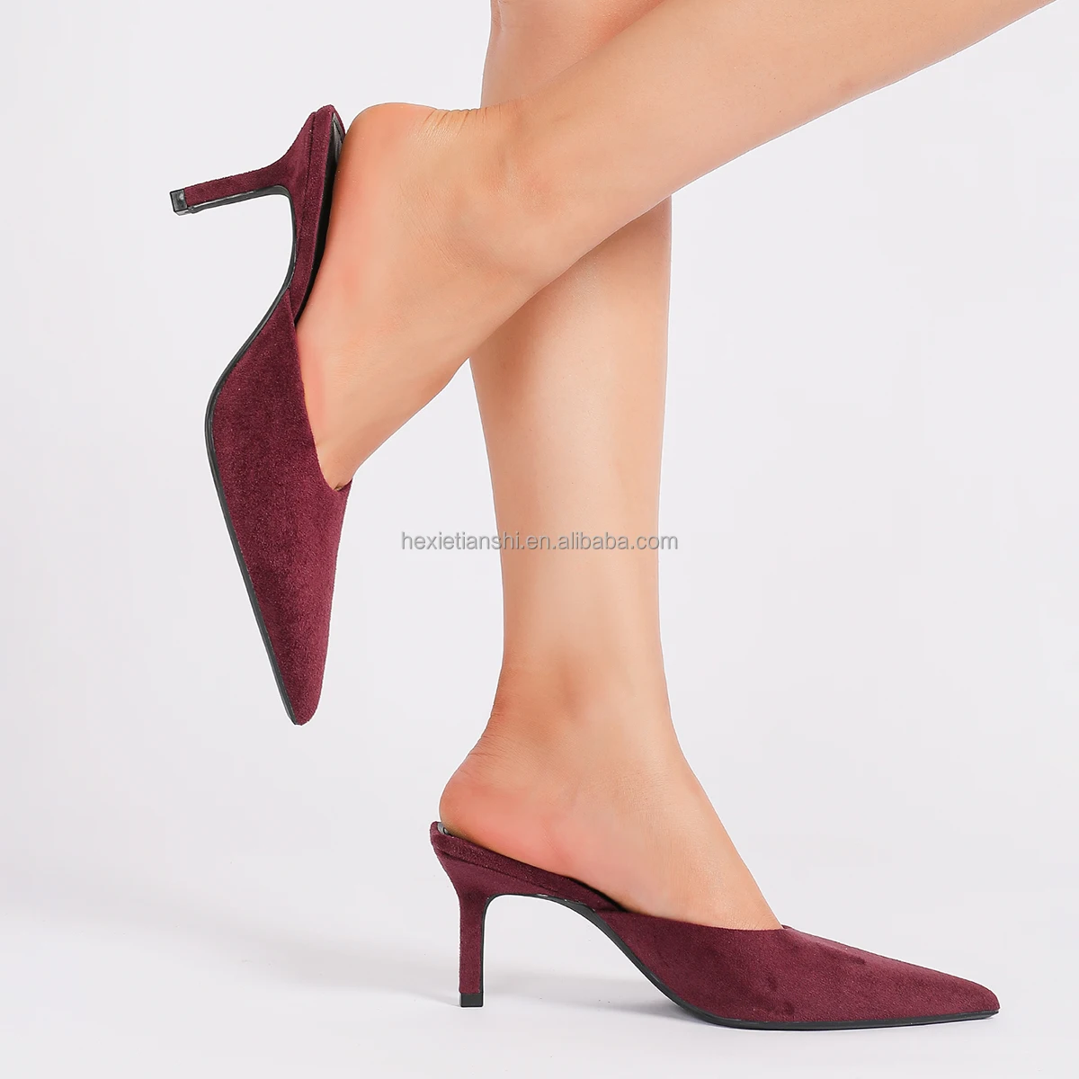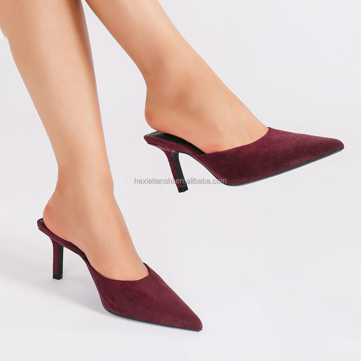 1208-33 Autumn New Custom Suede Mule Heel Shoes Simple Style Solid Color Pointed Toe High Heeled Mule Sandals for Women