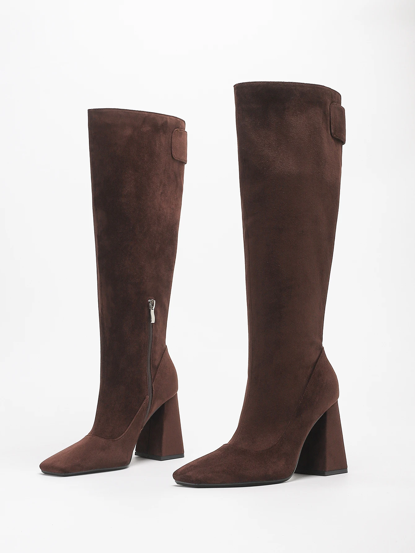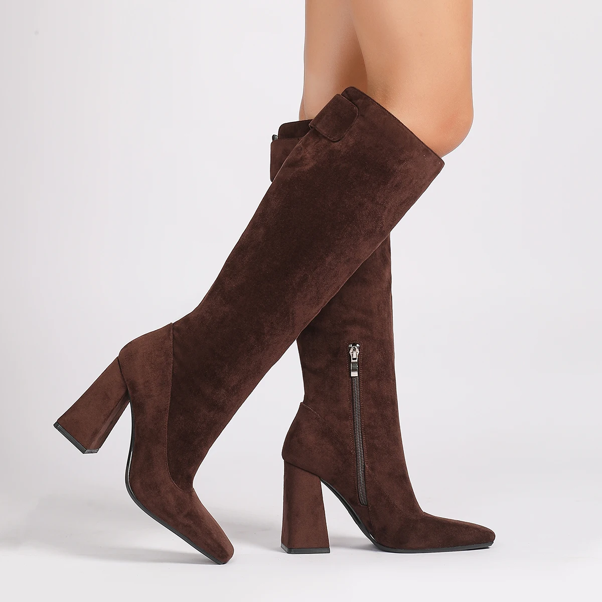 1229-7 Custom LOGO Fall Winter Collection Suede Square Toe Women Boots Luxury Shoes Women 9.5 CM Thick Heele Knee-High Boot