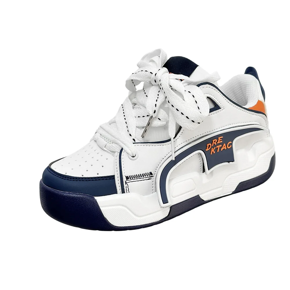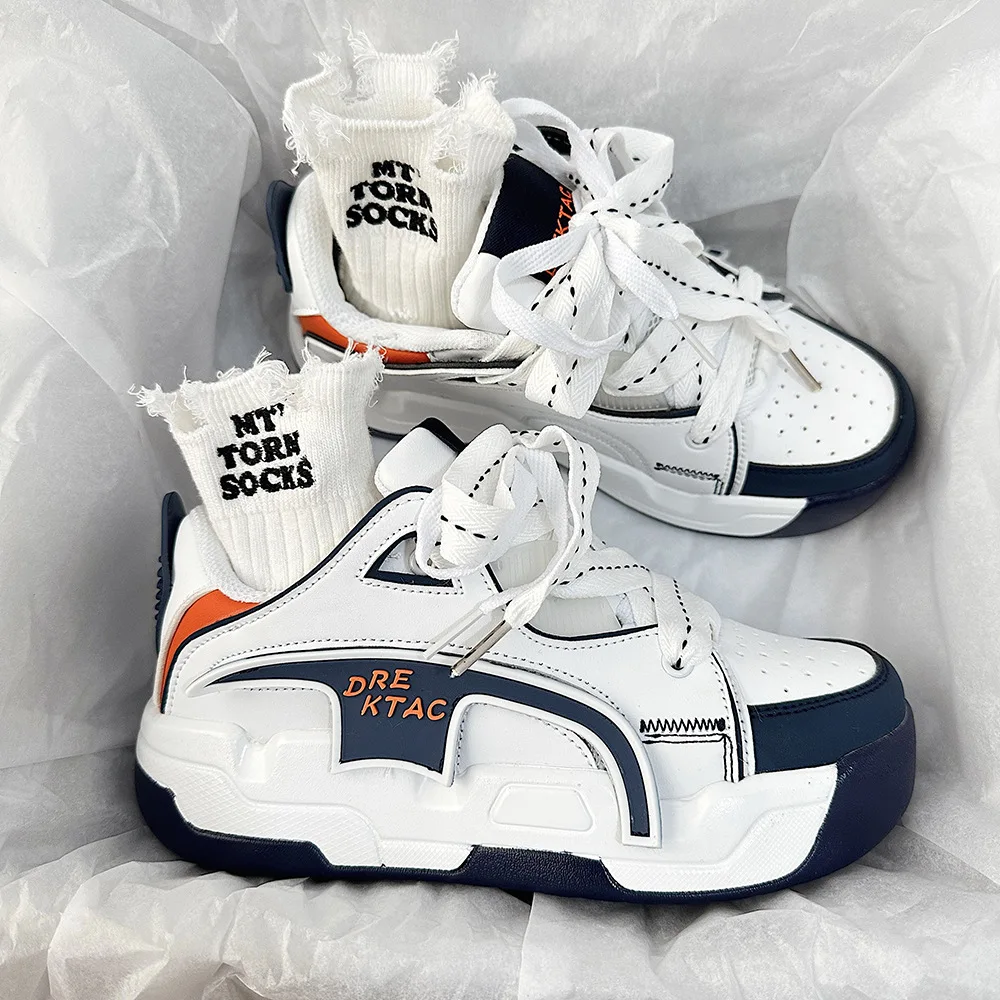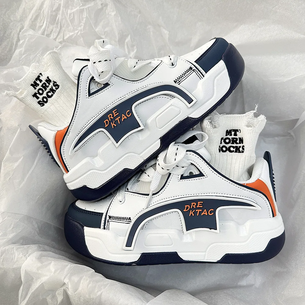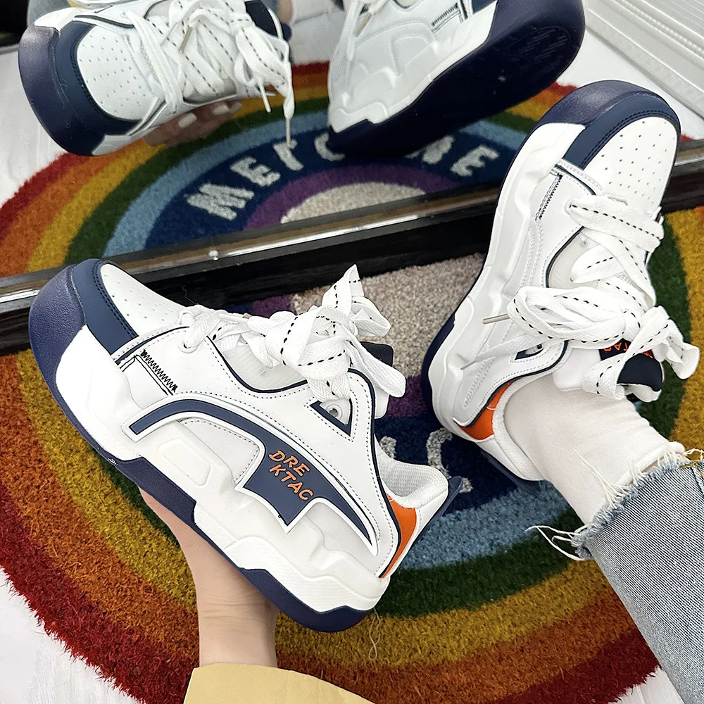 Thick Sole Round Toe Microfiber Upper Non-slip Hong Kong-style Casual Sports Shoes White