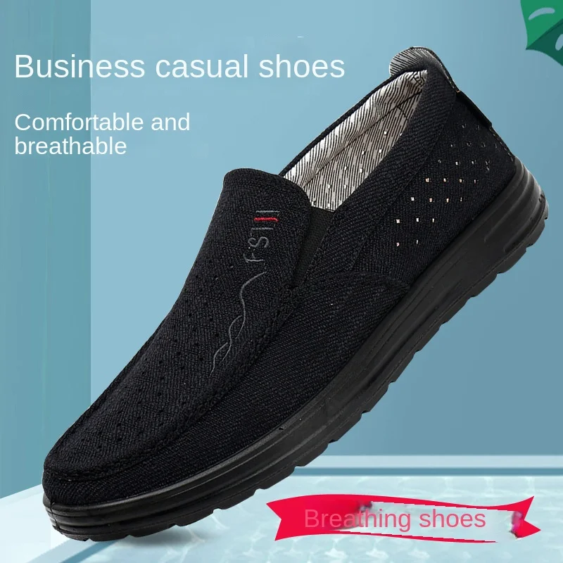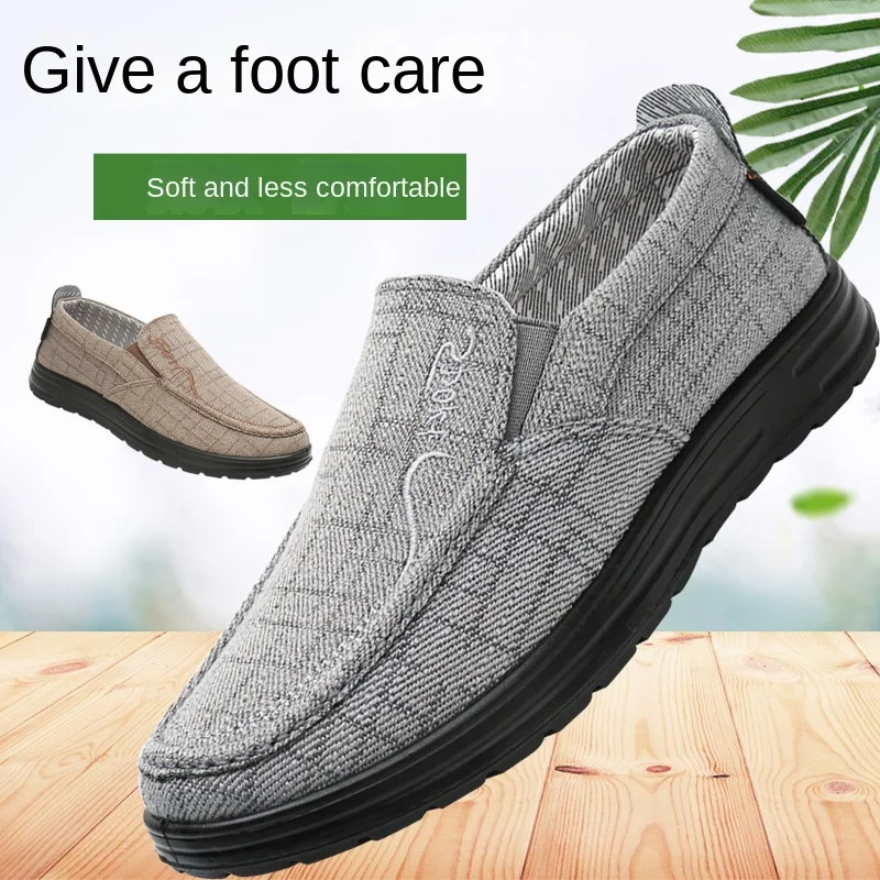 Men's Lightweight Walking Shoes Single-layer Polyurethane Soft-soled Casual Bean Slip-on Head Solid Color Middle-aged