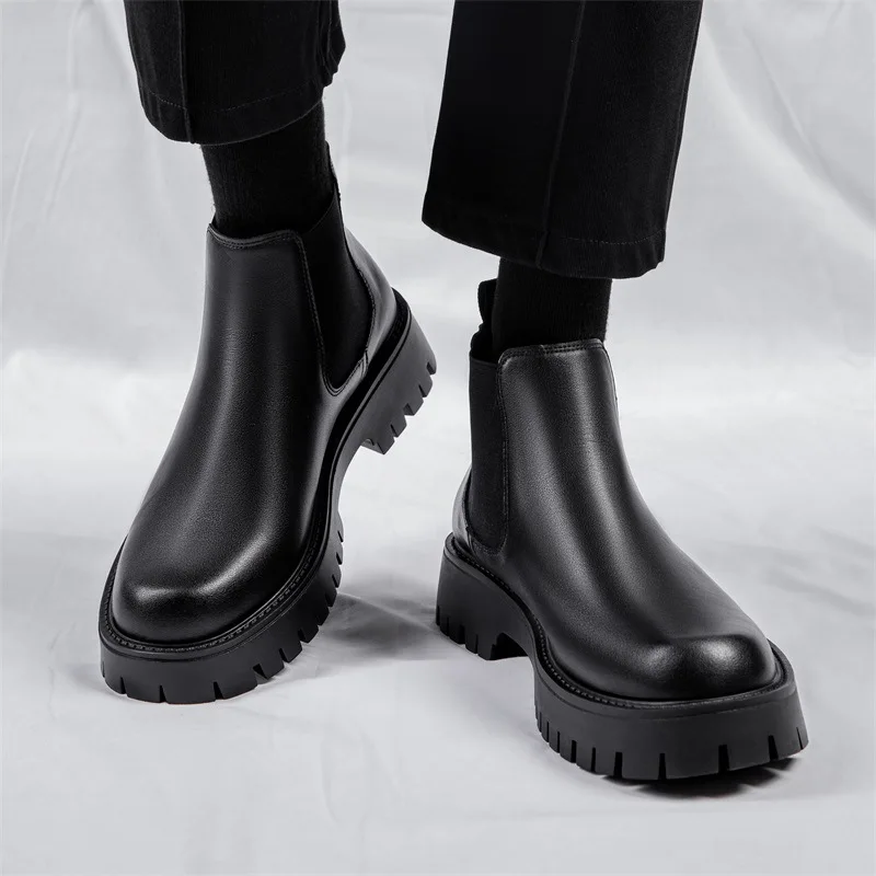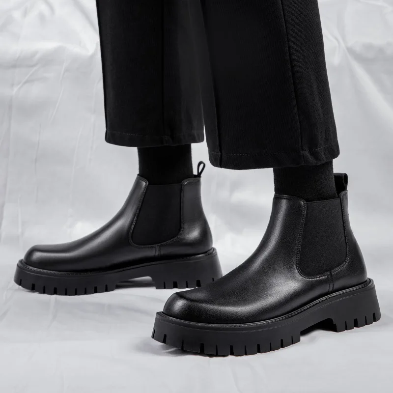 Tilo Shark Men's Winter Genuine Leather British Style Chelsea Boots Ankle Bootie Genuine Leather Lining Slip-on Fashion Trend