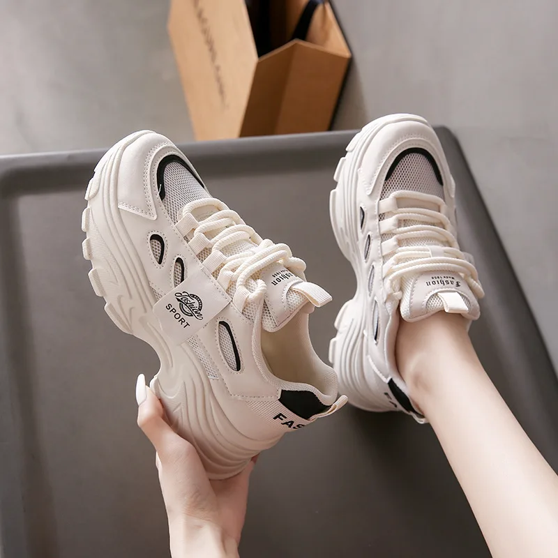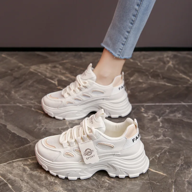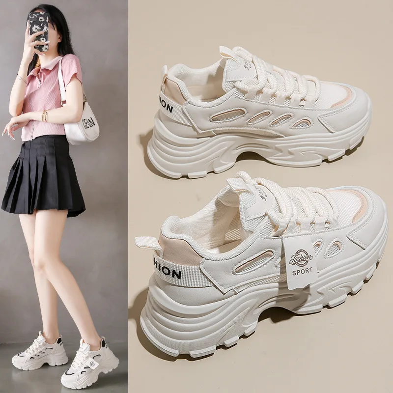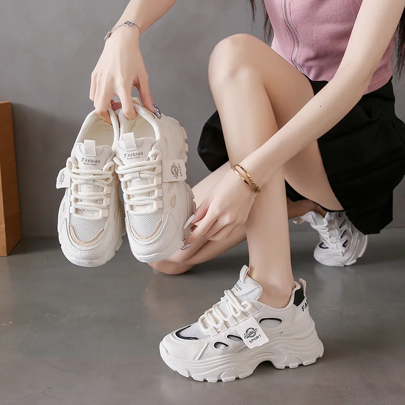 2026 Summer Women's Ins Korean Style Torre Sports Running Shoes with High-Heel Thick Sole Casual Lace-Up Closure Model FB-03
