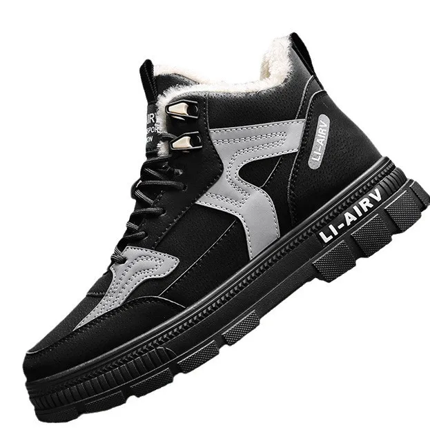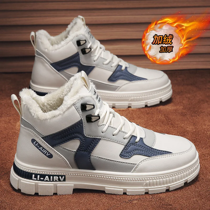 Men's High Top Winter Shoes Thickened Fur Lining Warm Cotton White Board Height Increasing PU for Sports Leisure Junior