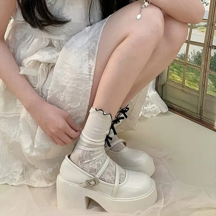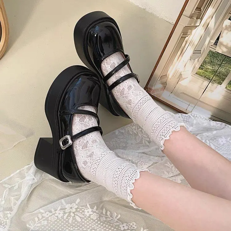 Fashion Black Thick-Soled Chunky Heel Women's Leather Round Toe Buckle Closure Retro Mary Jane Flats Autumn Winter New Summer
