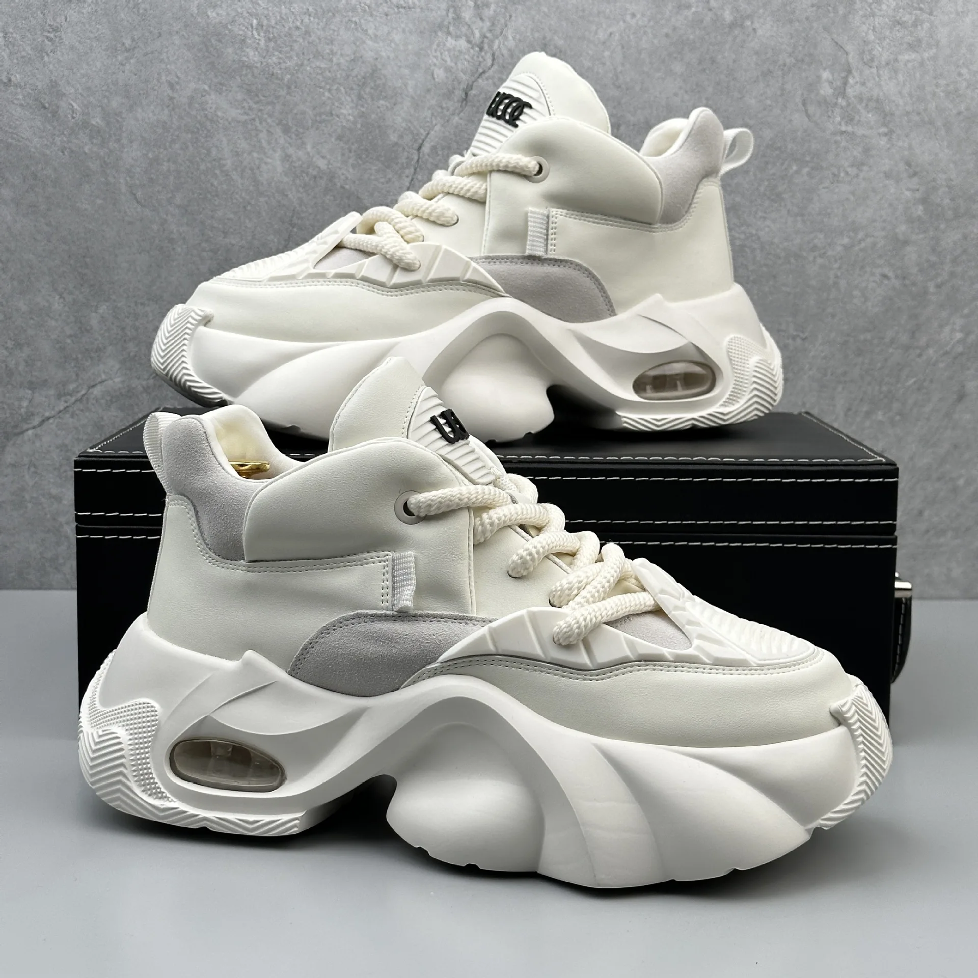 Thick-soled Shoes Men's 2026 Summer New Style Elevated High-height Pointed Toe Artificial PU Upper Tie Closure Super