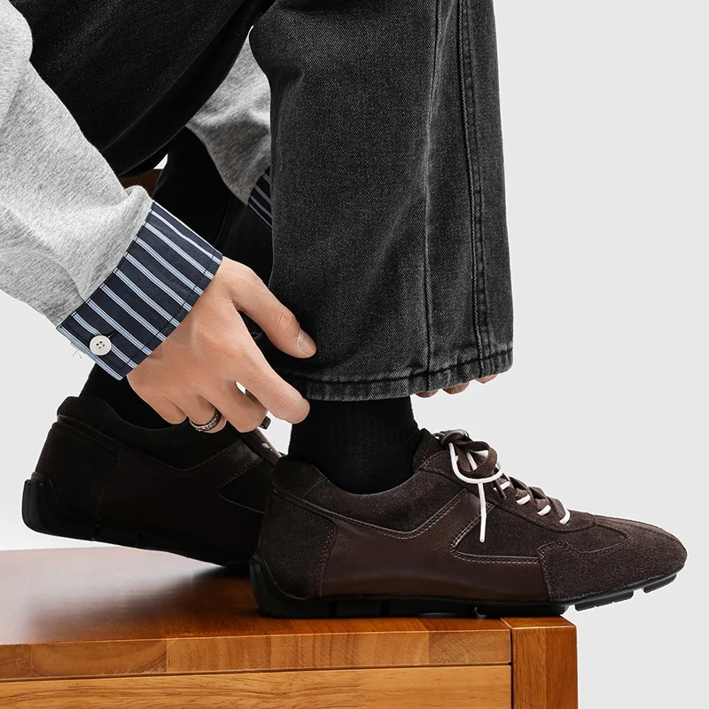 Brown Winter Casual Lace-Up Sneakers Men's German Training Commuter British Style Derby Versatile Shoes