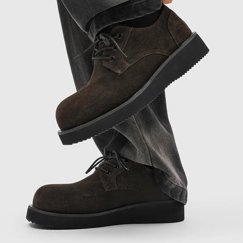 Men's Thick-Soled Height-Increasing Derby Shoes 2026 Autumn Casual Superfine Fiber Upper Work 1560 Brown-H