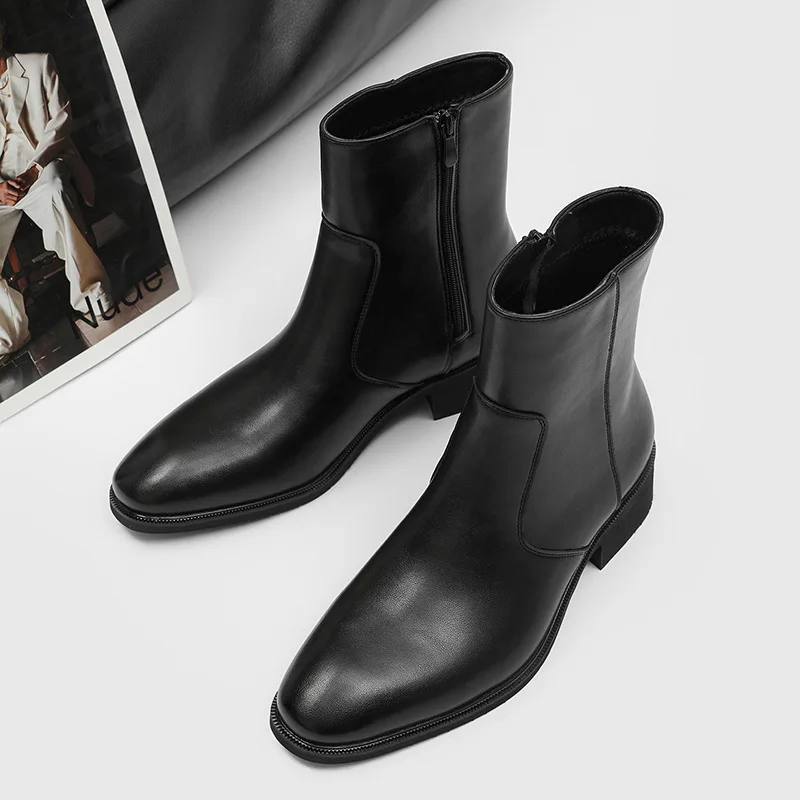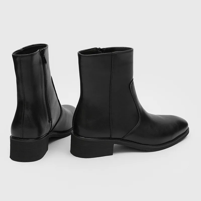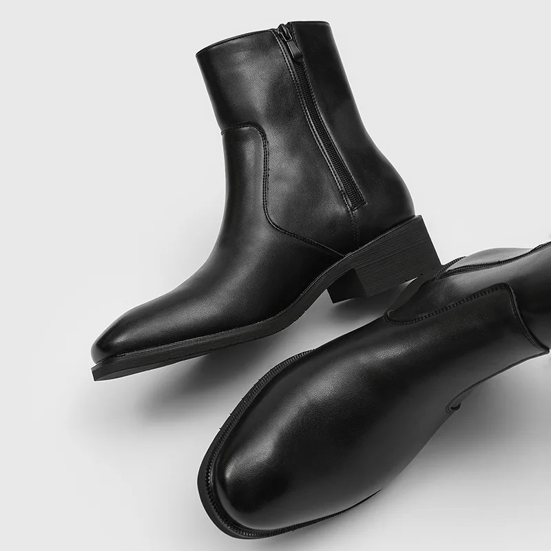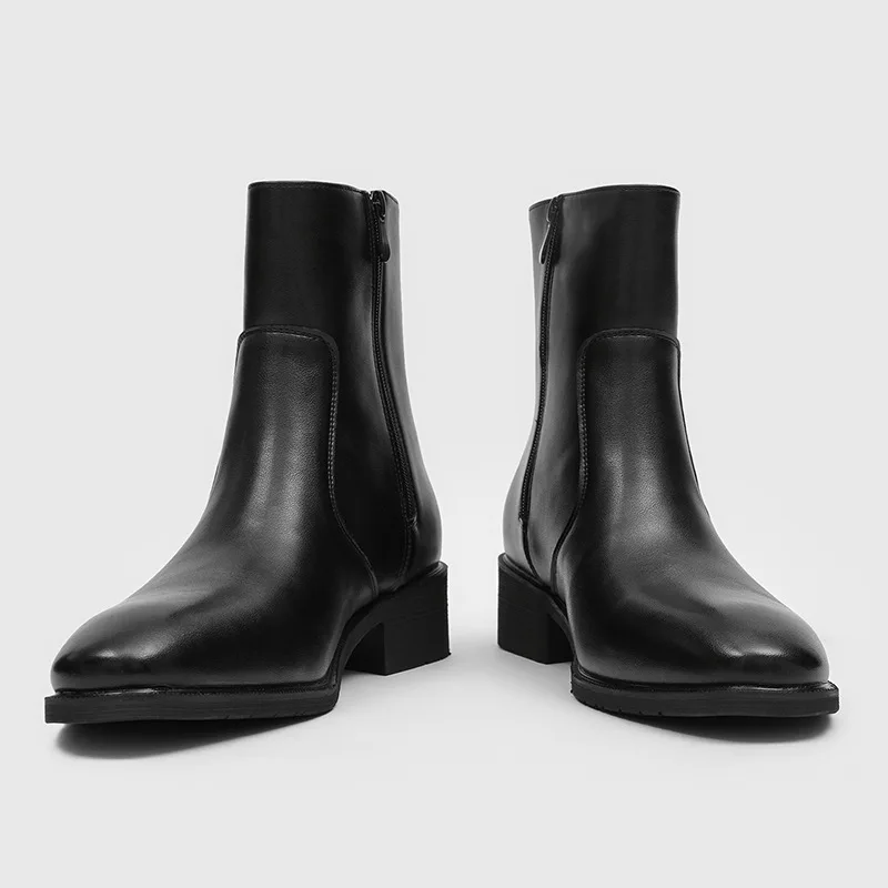 New Style Casual Side Zipper Thick Heel Black High-End High-Top Short Chelsea Boots Pointed Toe Men's ZYD010