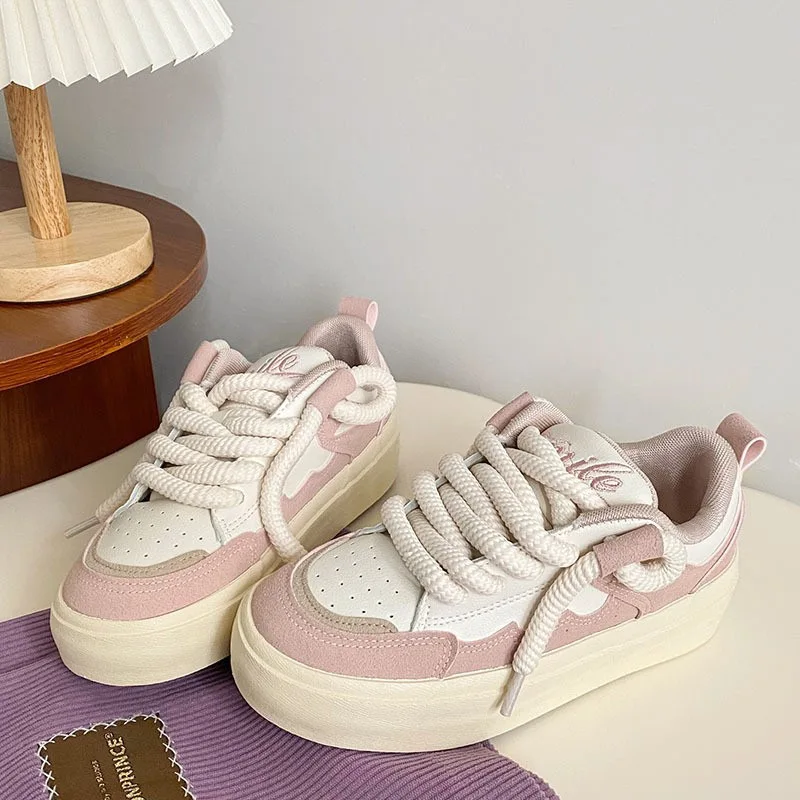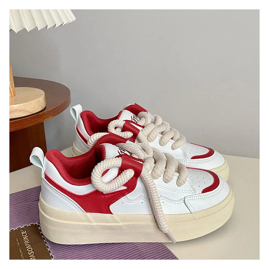 Spring New Sneaker Student White Shoes Female Breathable Thick Sole Flat Shoes Women