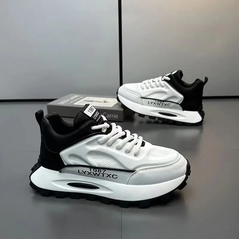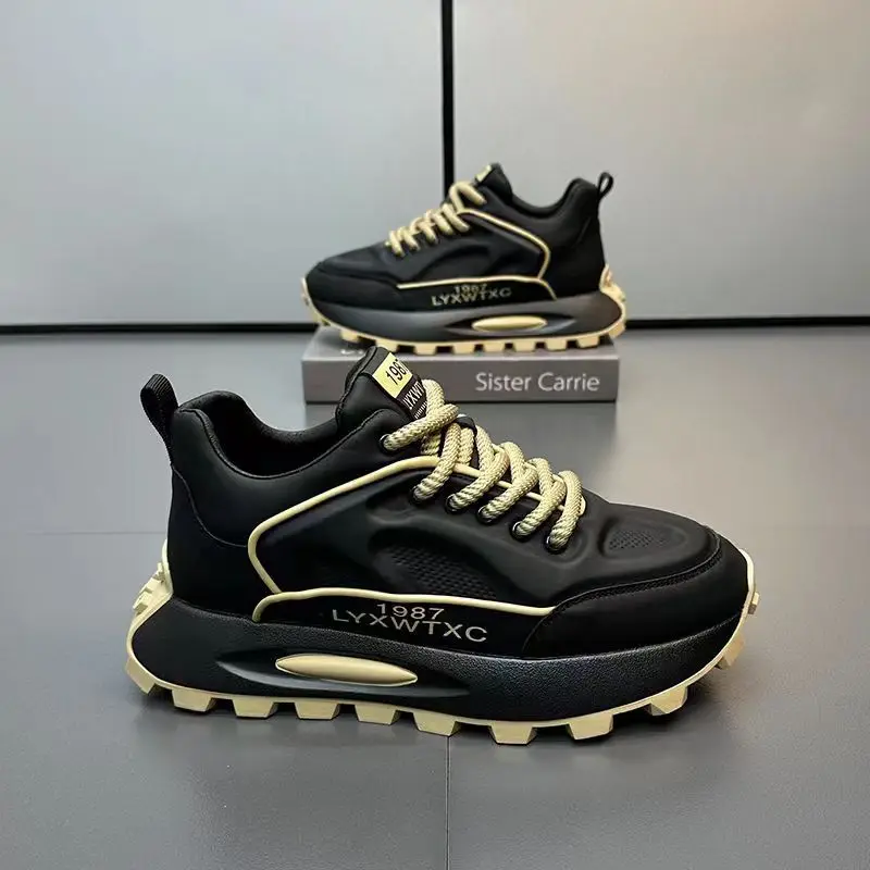 Trendy Men's Winter Casual Shoes with Height Increasing Soft Bottom Niche Personalized Lace-Up Closure Multicolor