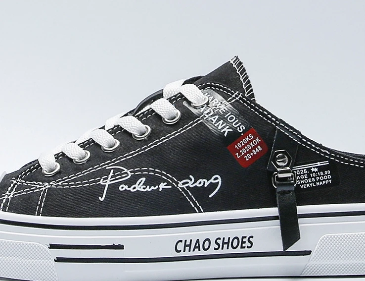 Summer New Men's Half Drag Skateboard Shoes Breathable Bag Head Design Waterproof Lightweight Lace-Up Closure PVC Rubber Insole