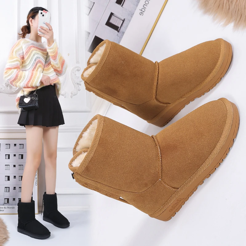 Outdoor Fashion Ladies Thick Bottom Shoes Non Slip Large Cotton Padded Warm Breathable Snow Boots