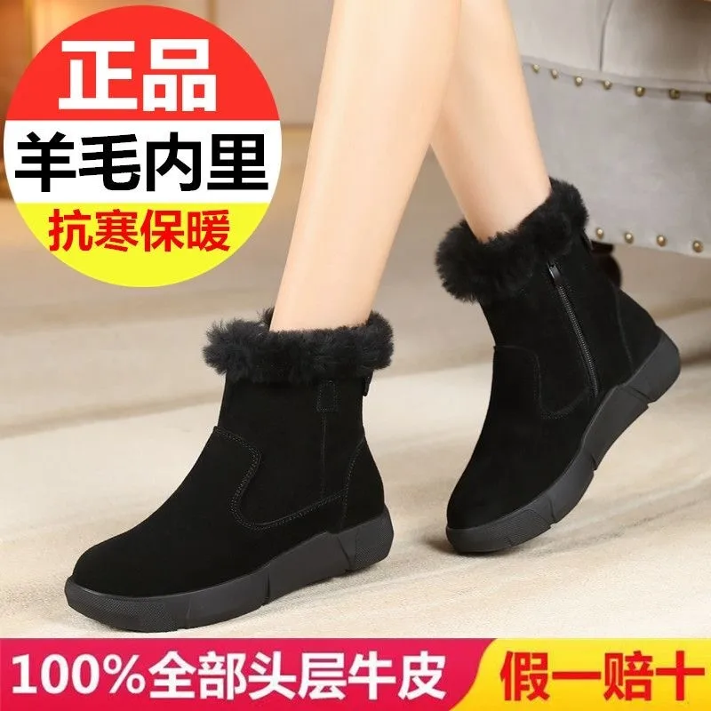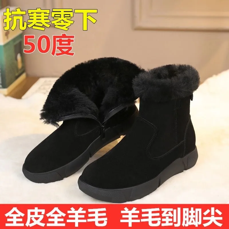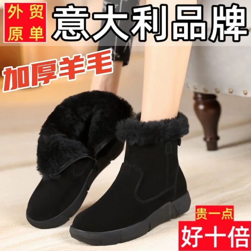 Thickened Snow Boots Female Winter Fur One Cotton Shoes Non-Slip Short Womens Footwear