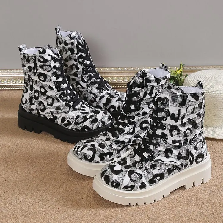 British Style Lace up Short Boots Lace up Round Toe Wear Resistant and Breathable Non-slip Casual Leather Boots