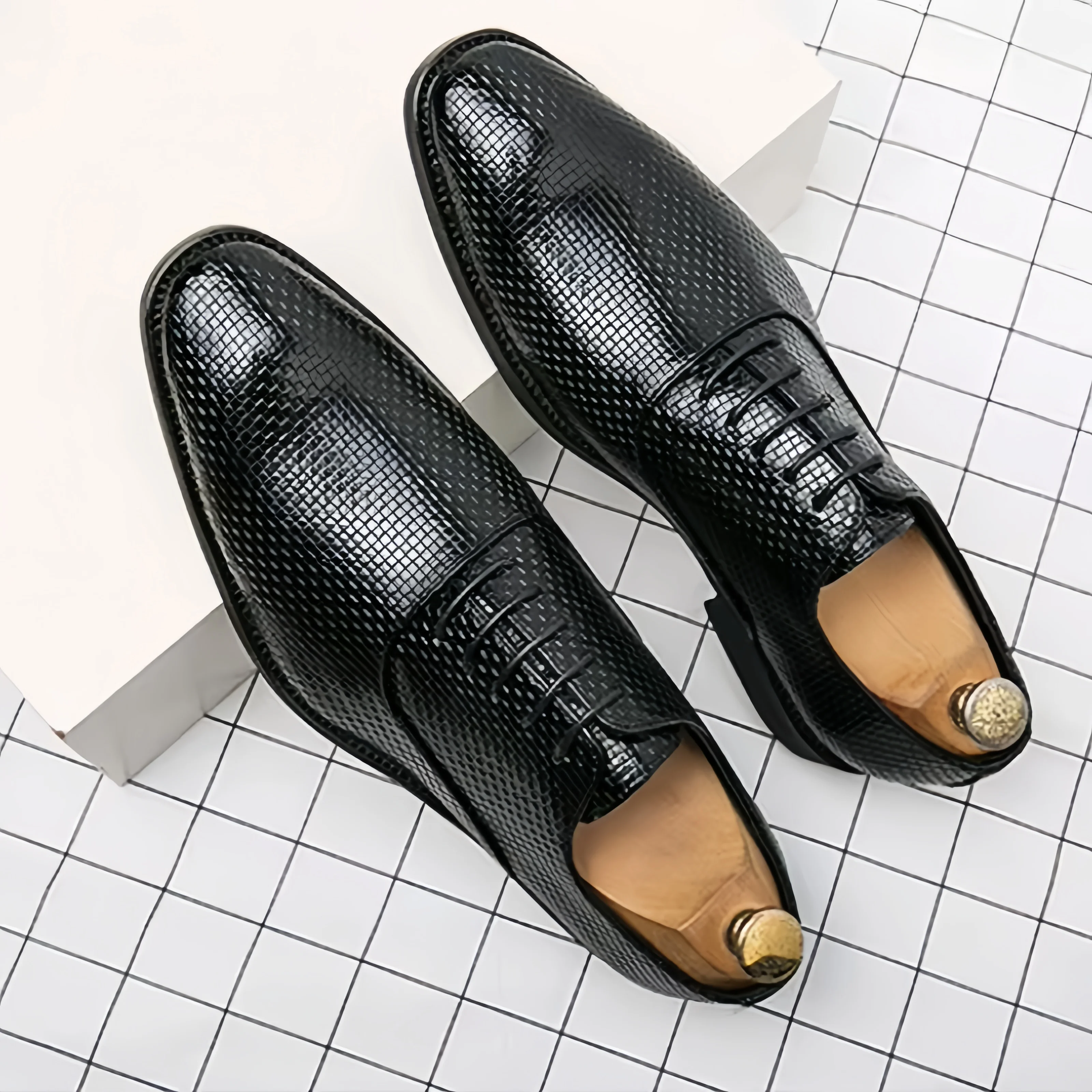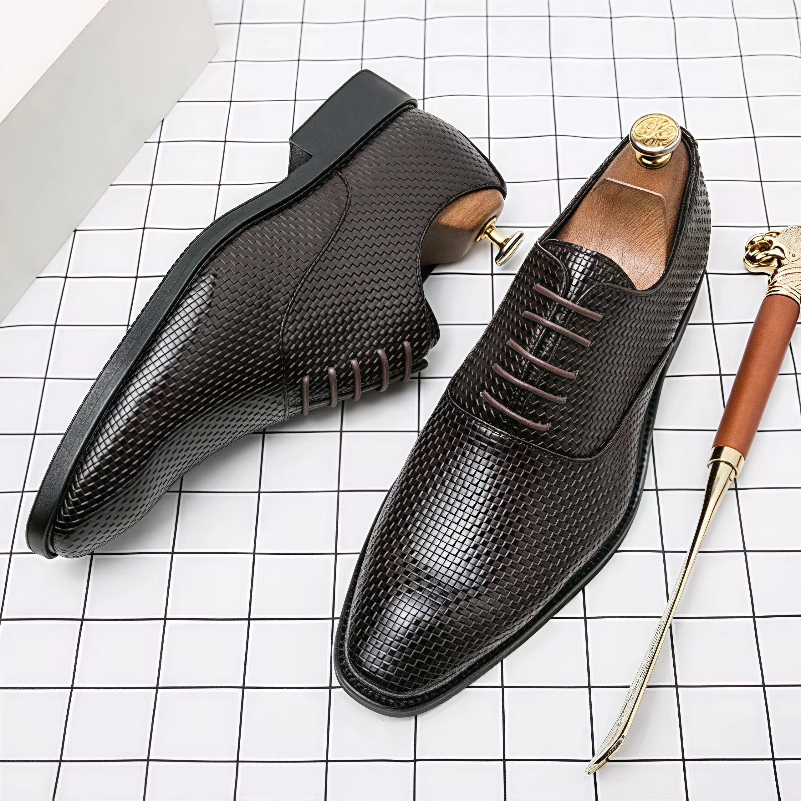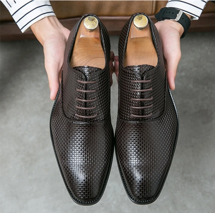 Braided Pointed Business Shoes Anti-Slip Oxford Lace-Up Design Waterproof Wear-Resistant Features Men's Formal Shoes