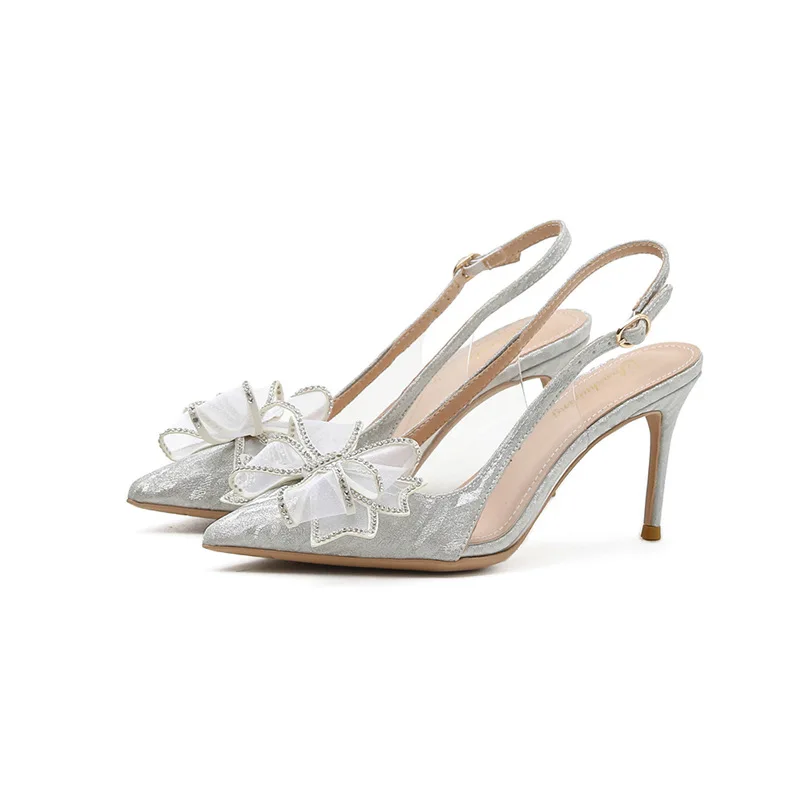 Outdoor Thin Pointy Bridal Wedding Shoes Sparkles Rhinestones Bow Fashion Trend Bao Toe Women Sexy High-Heeled Sandals