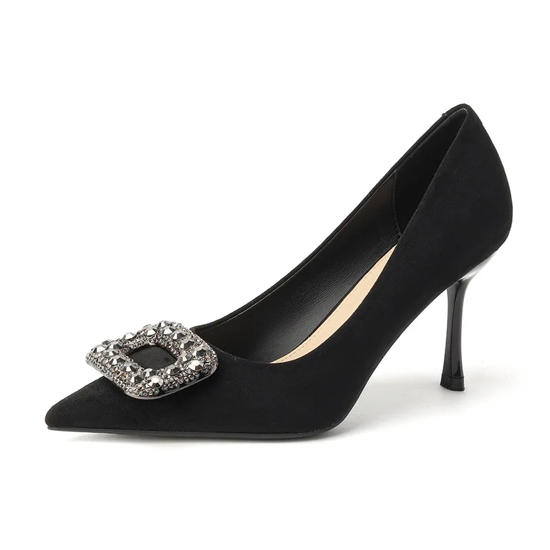 Women's Sexy Black Suede High Heels Pumps Not Tire Pointed Toe Stiletto Hard-Wearing Rhinestone Wedding Bridal Slides for Women