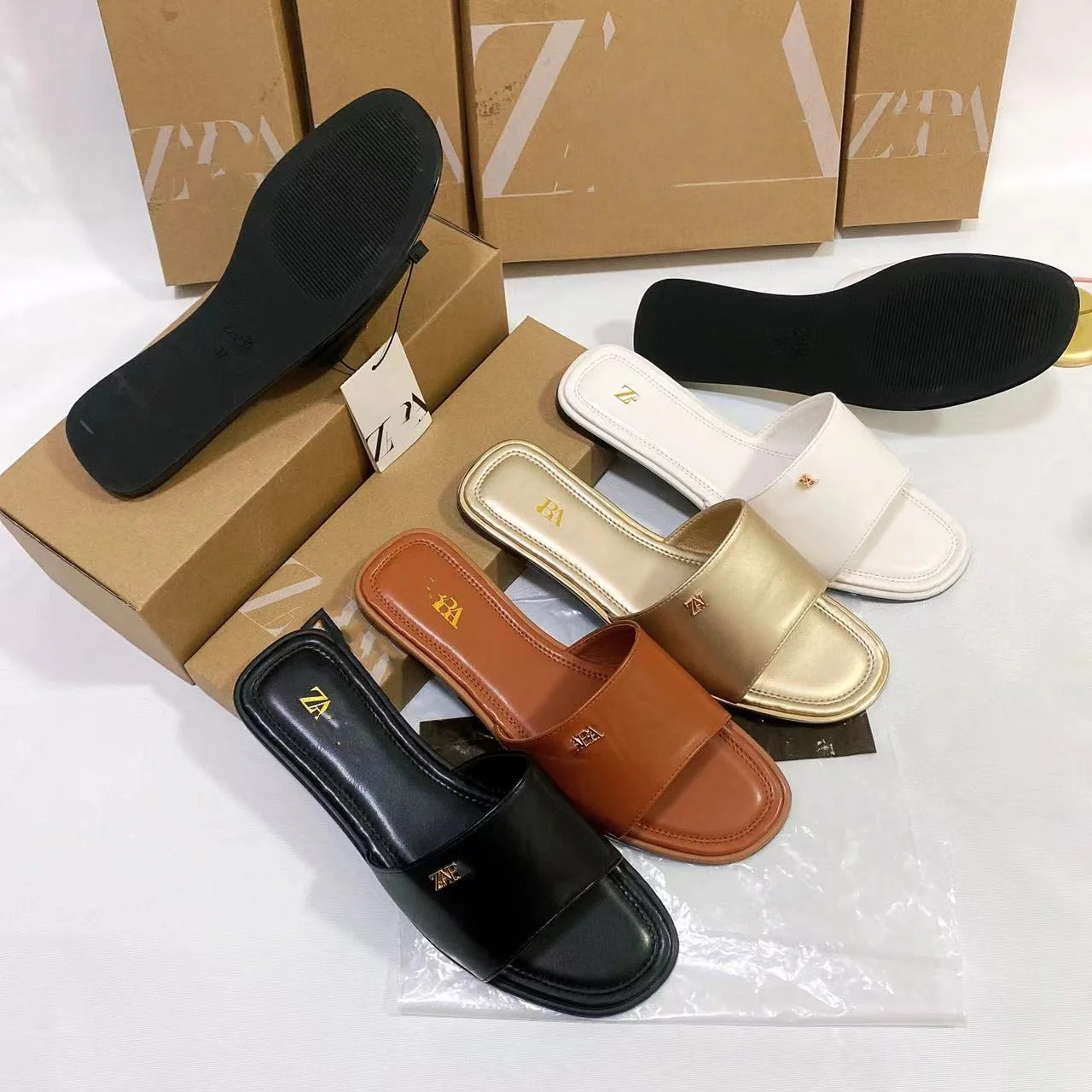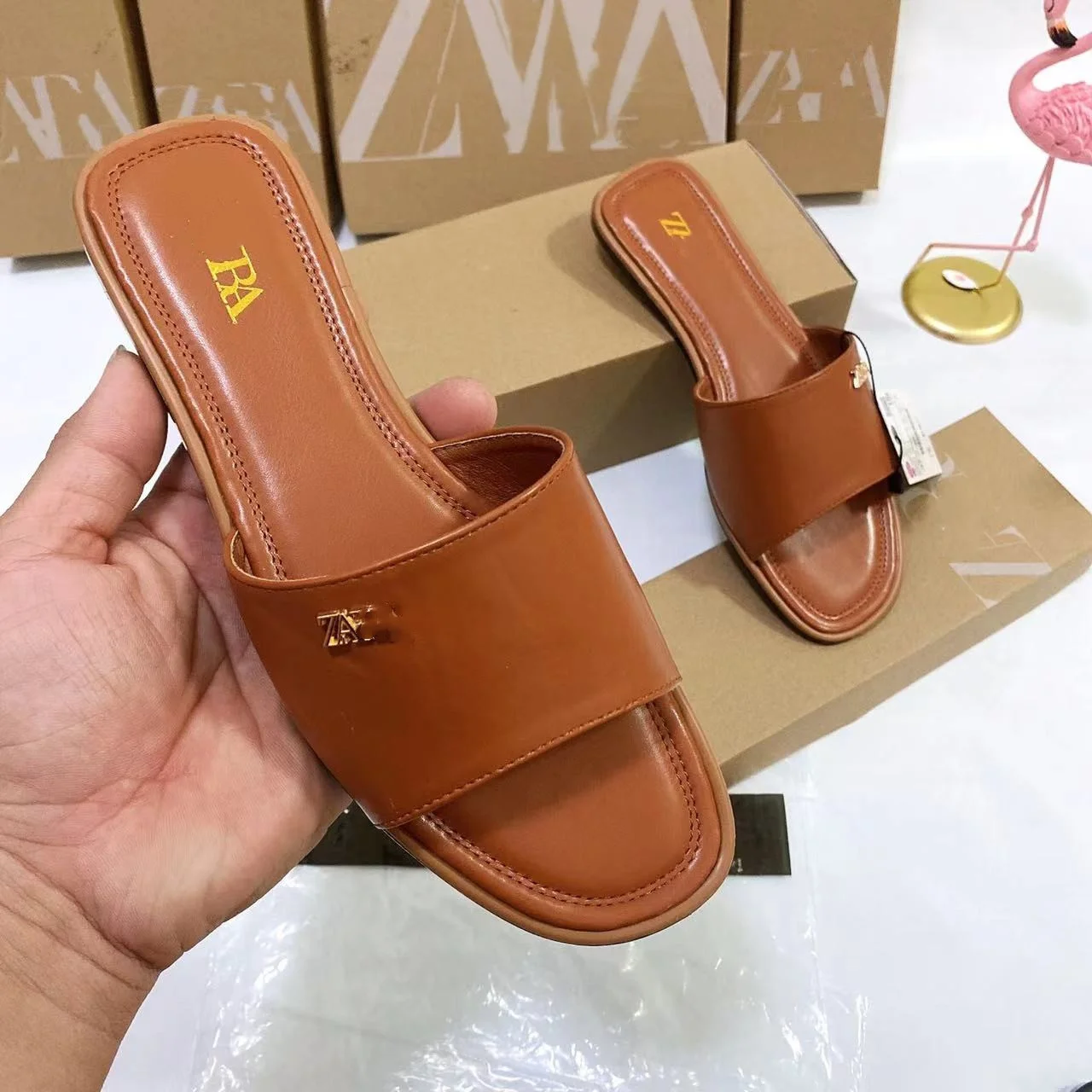 New Summer European and American Style Flip-flops with Simple Letter Metal Buckle Flat slippers