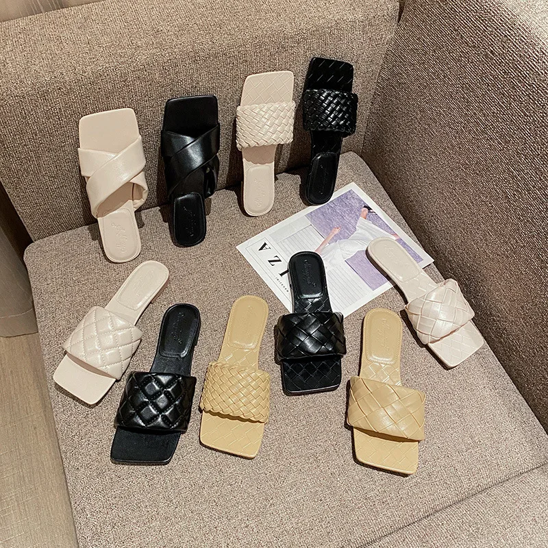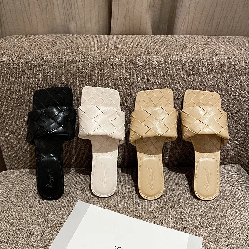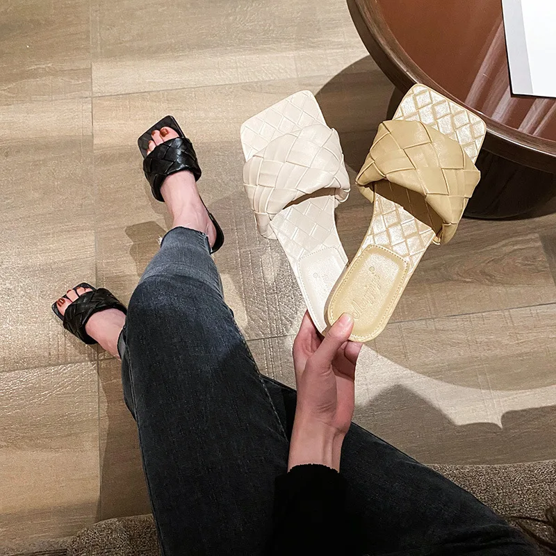 French Flat Cool slippers Female Summer Wear New Temperament Weave a Word Procrastinates Lag Open-toed Sandals