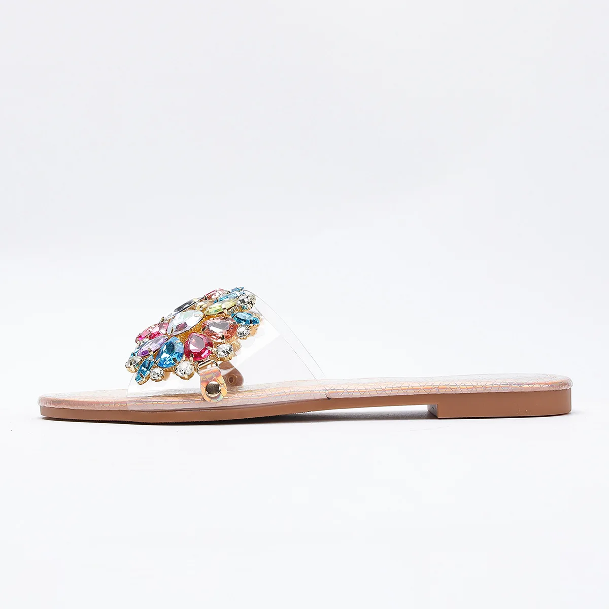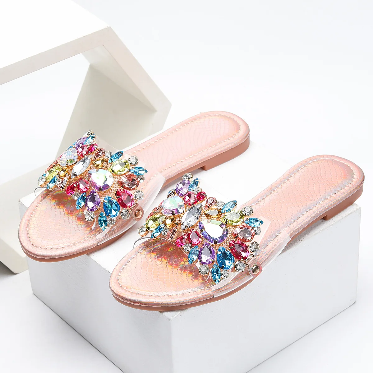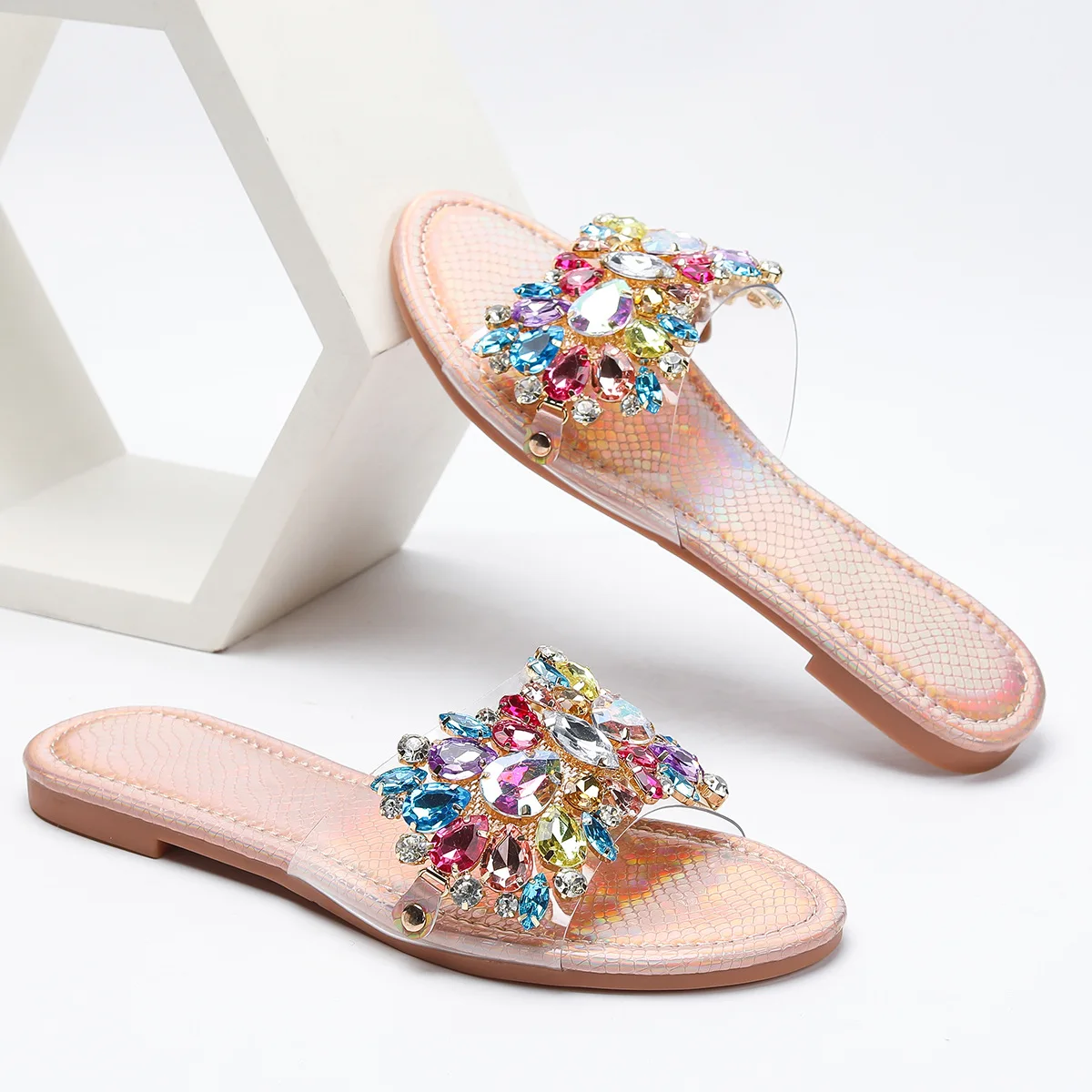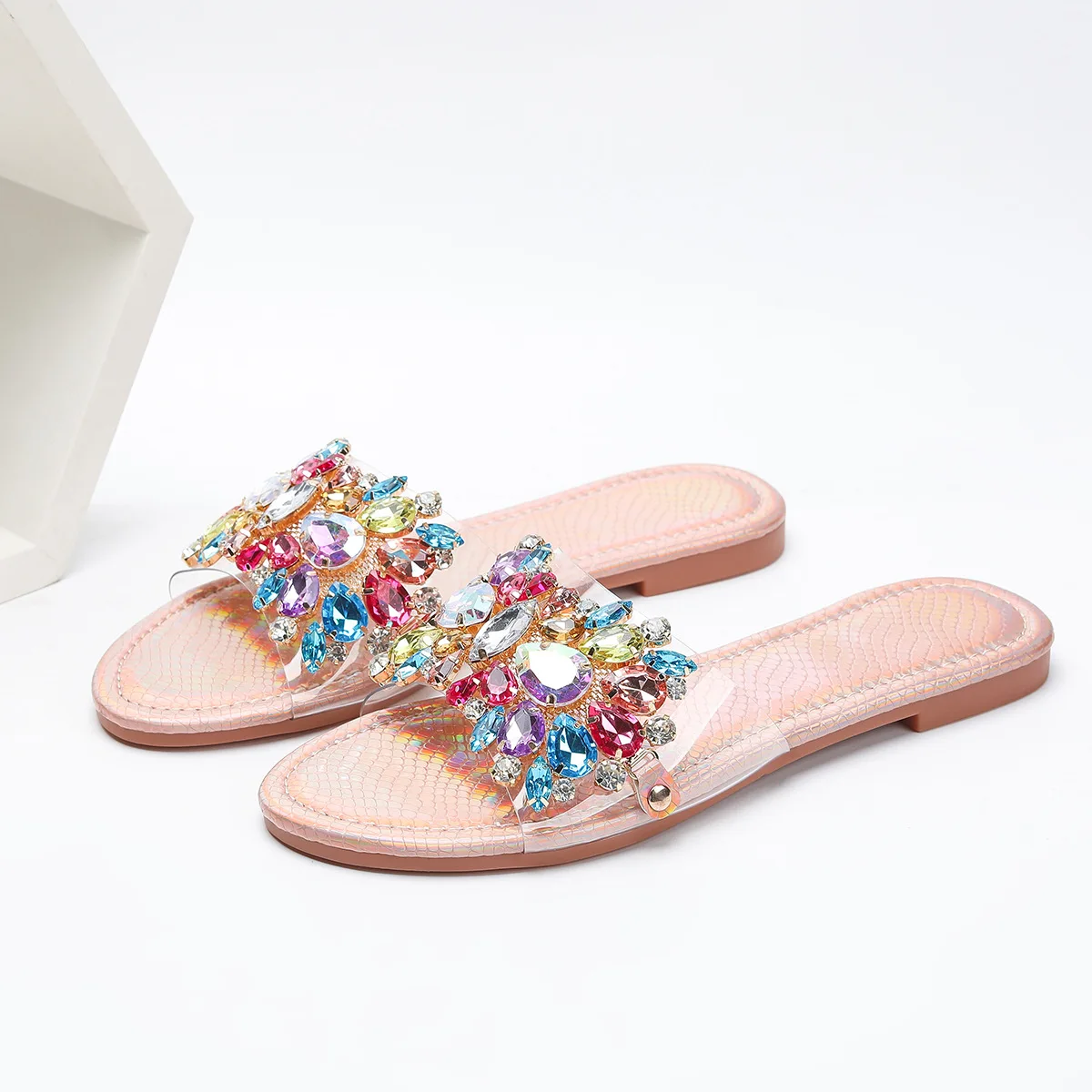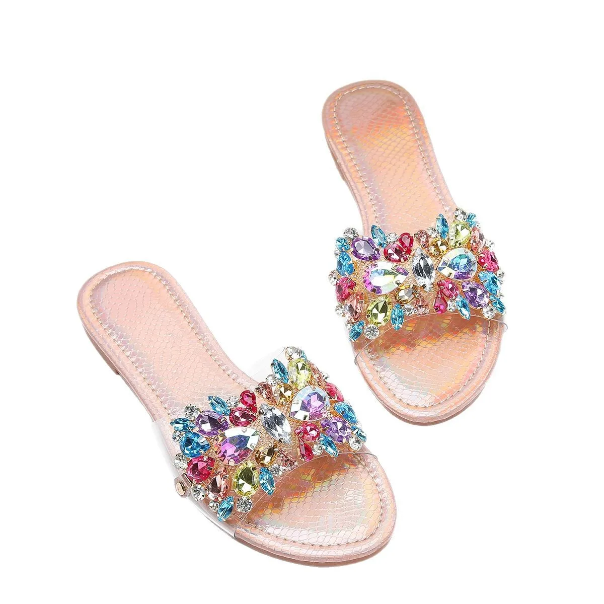 Cross-border Women's Rose Gold Luxury Charm Head Flat Bottom Comfortable Non-slip Summer Outdoor for slippers