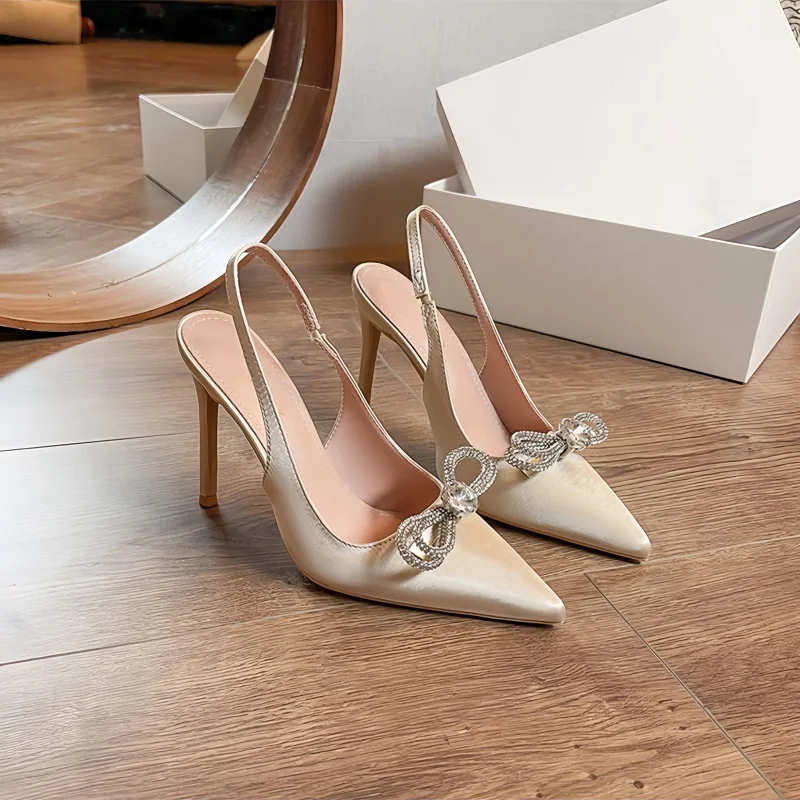 High Top Lace-Up Outdoor Women's Crystal Bow Diamond Satin Closed Toe New Fashion Backless Design Sandals Heel Wedding Shoes