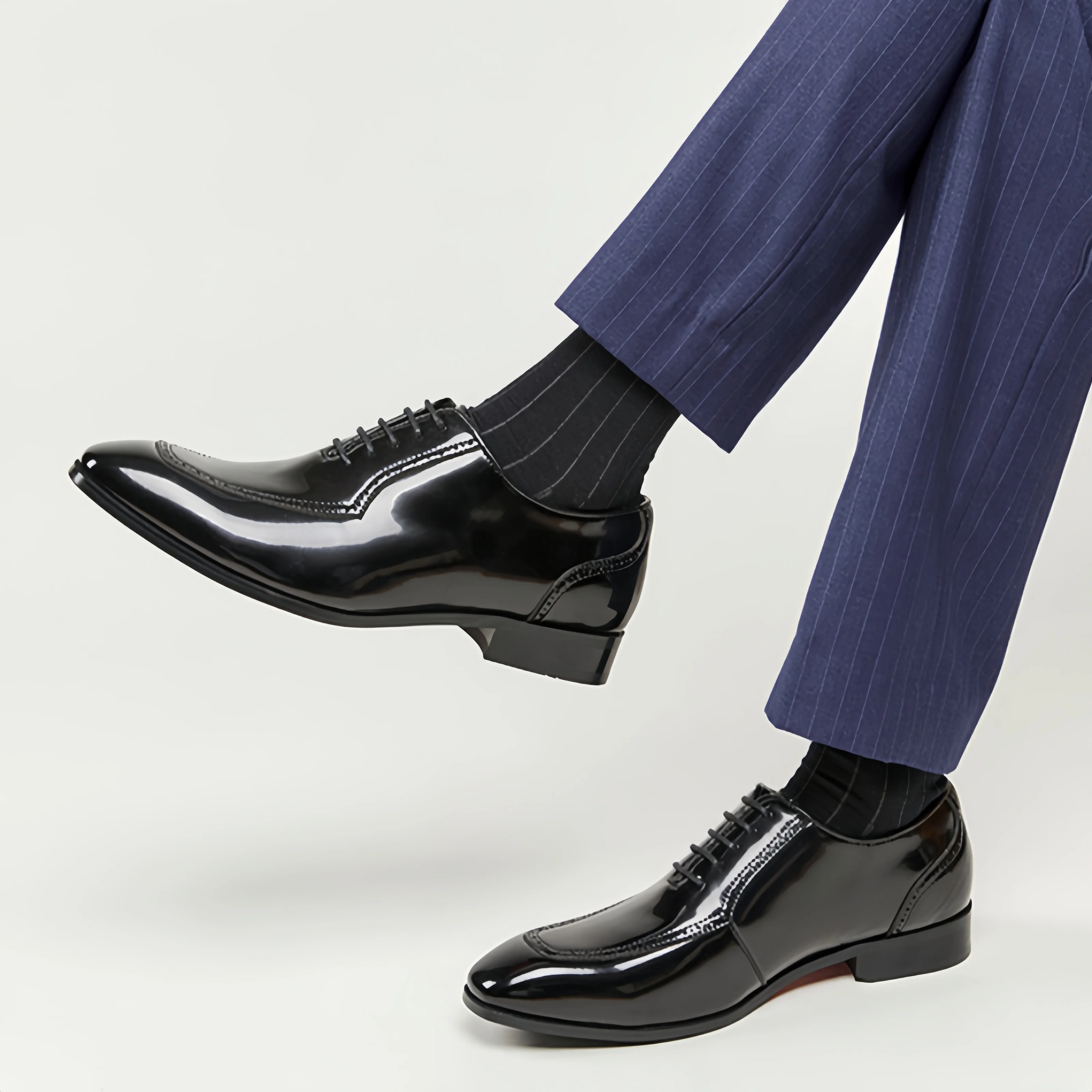 Men's British-Style Vintage Oxford Dress Shoes Bright Patent Leather Carved Square Toe Height Increasing Formal Shoes Wedding
