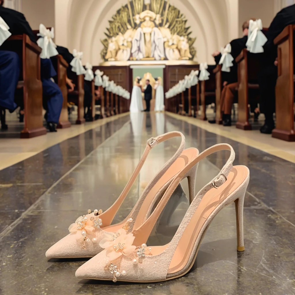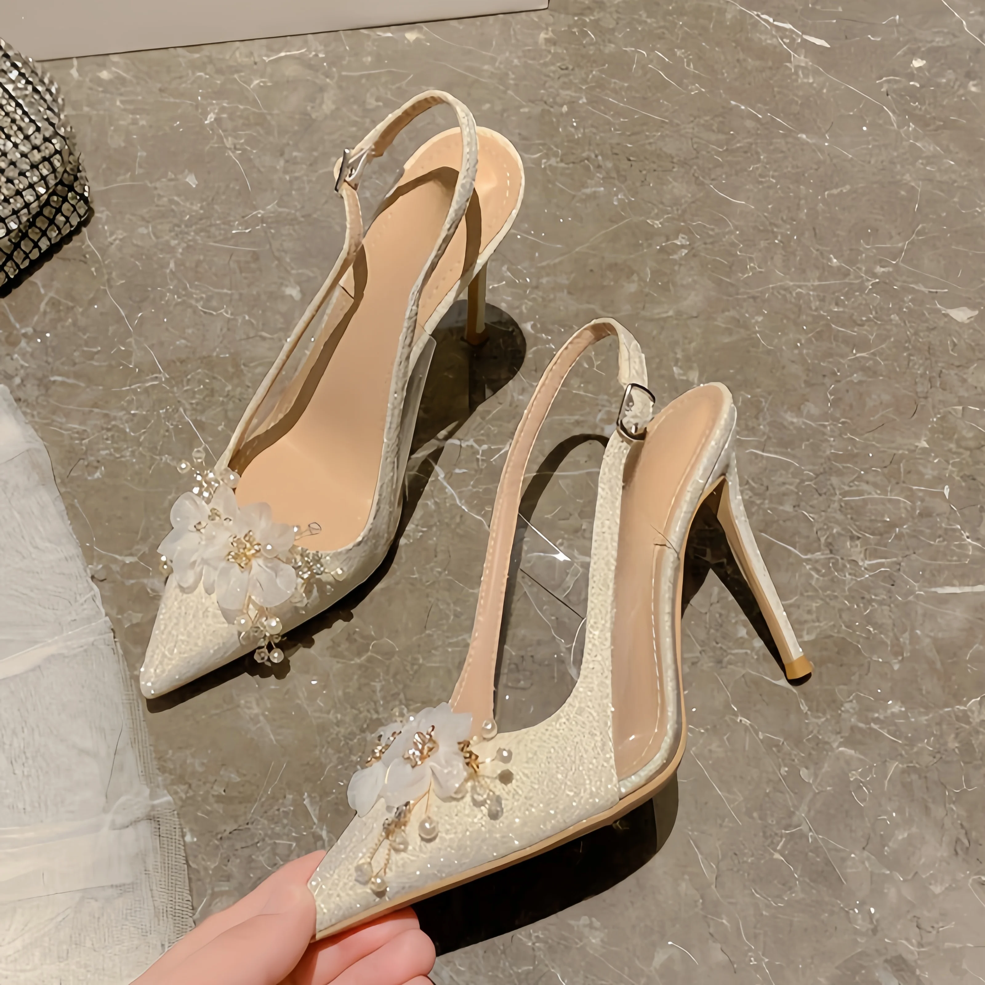 2026 LadiesWedding Party Stiletto Heel 6CM/8CM/10CM Pointy Outdoor Sexy Backless Fashion Closed Rhinestone Bridal Heels Sandals