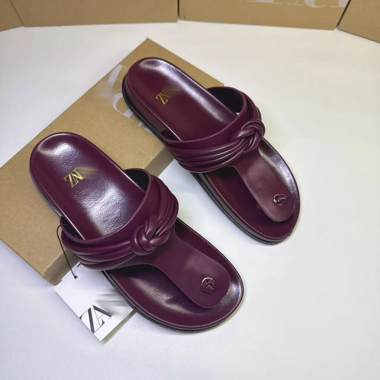 French Fashion Casual Flat Flip-flops Women Summer Beach Pinched Toe Large Size Sandals