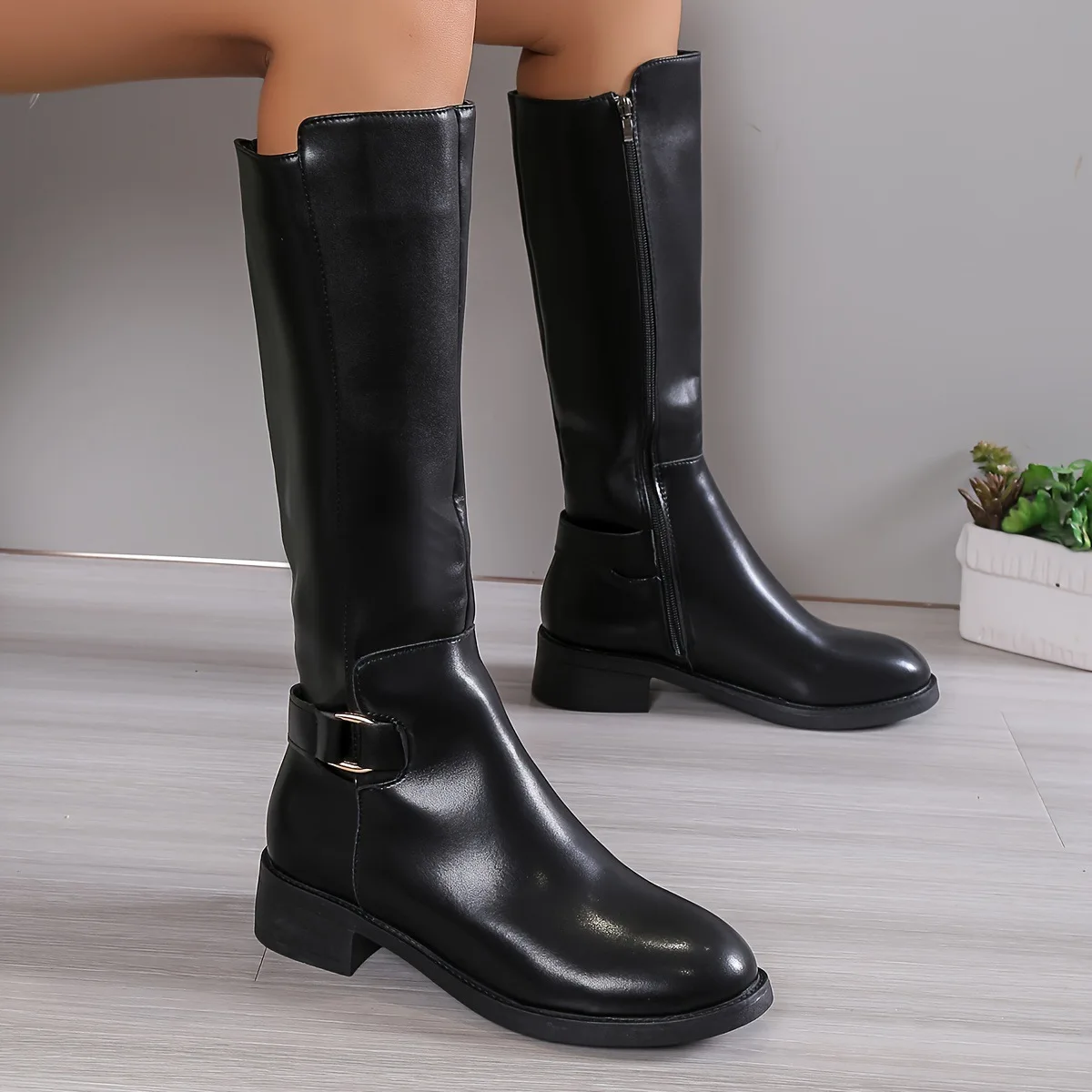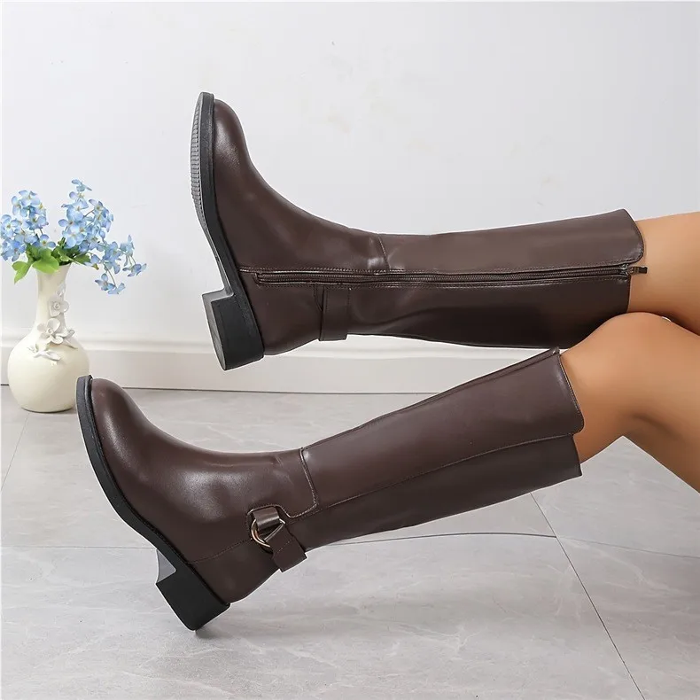 2026 Cross-border New Knight Boots Fashion Versatile Plus-size Women's Shoes Thick Heel Non-slip Wear-resistant Boots