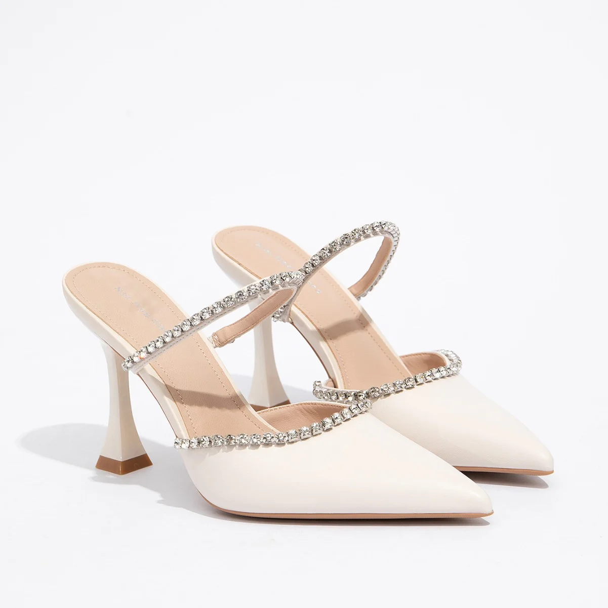 High-End Fashionable Summer Banquet Shoes with Rhinestone One-Line Shallow Mouth Pointed Toe Thin High Heel