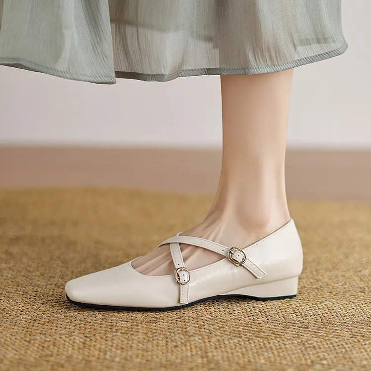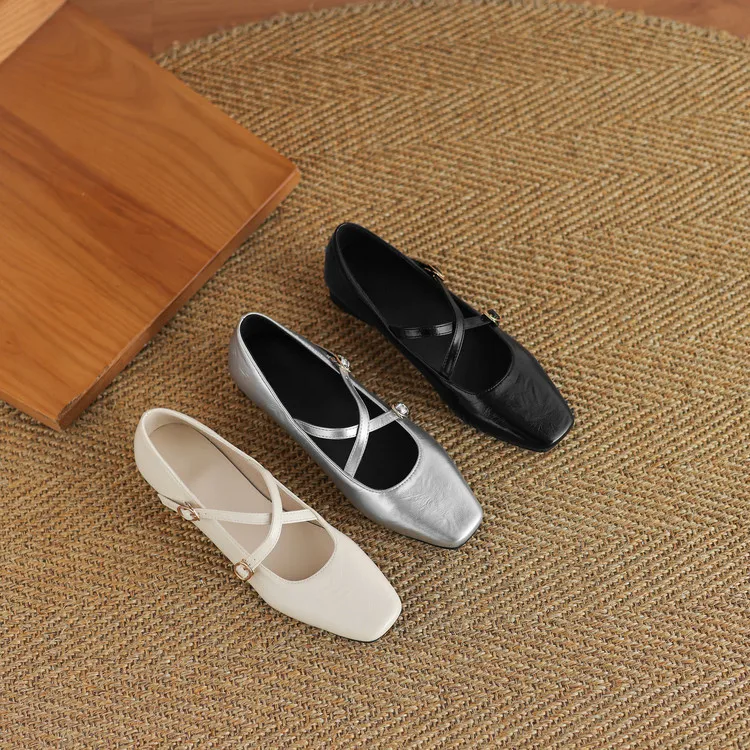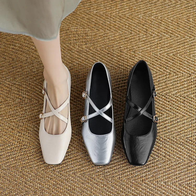 Women's Retro Style Genuine Leather High Low Fashionable Vintage Design Bridal Dress Shoes Thin Hard-Wearing Heels