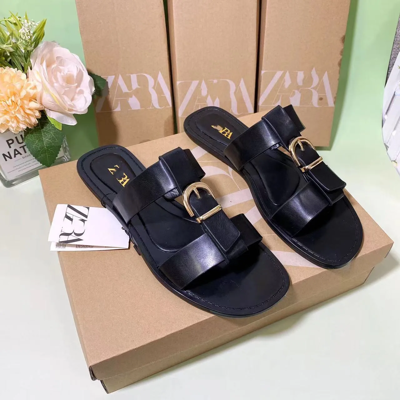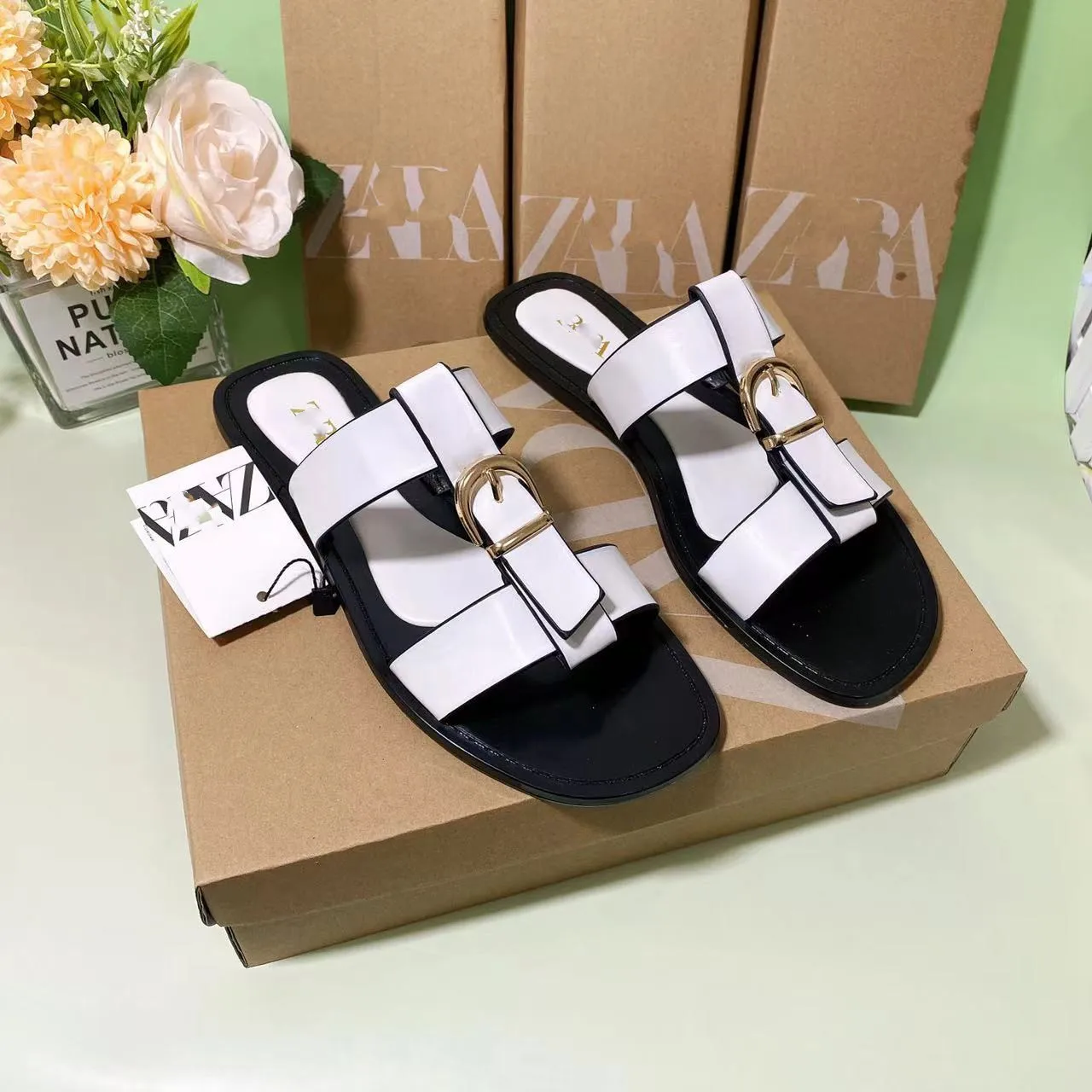New Hardware Buckle Autumn Fashion for European and American Popular Women's Sandals Flat Shoes