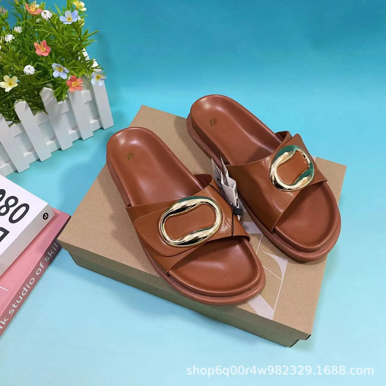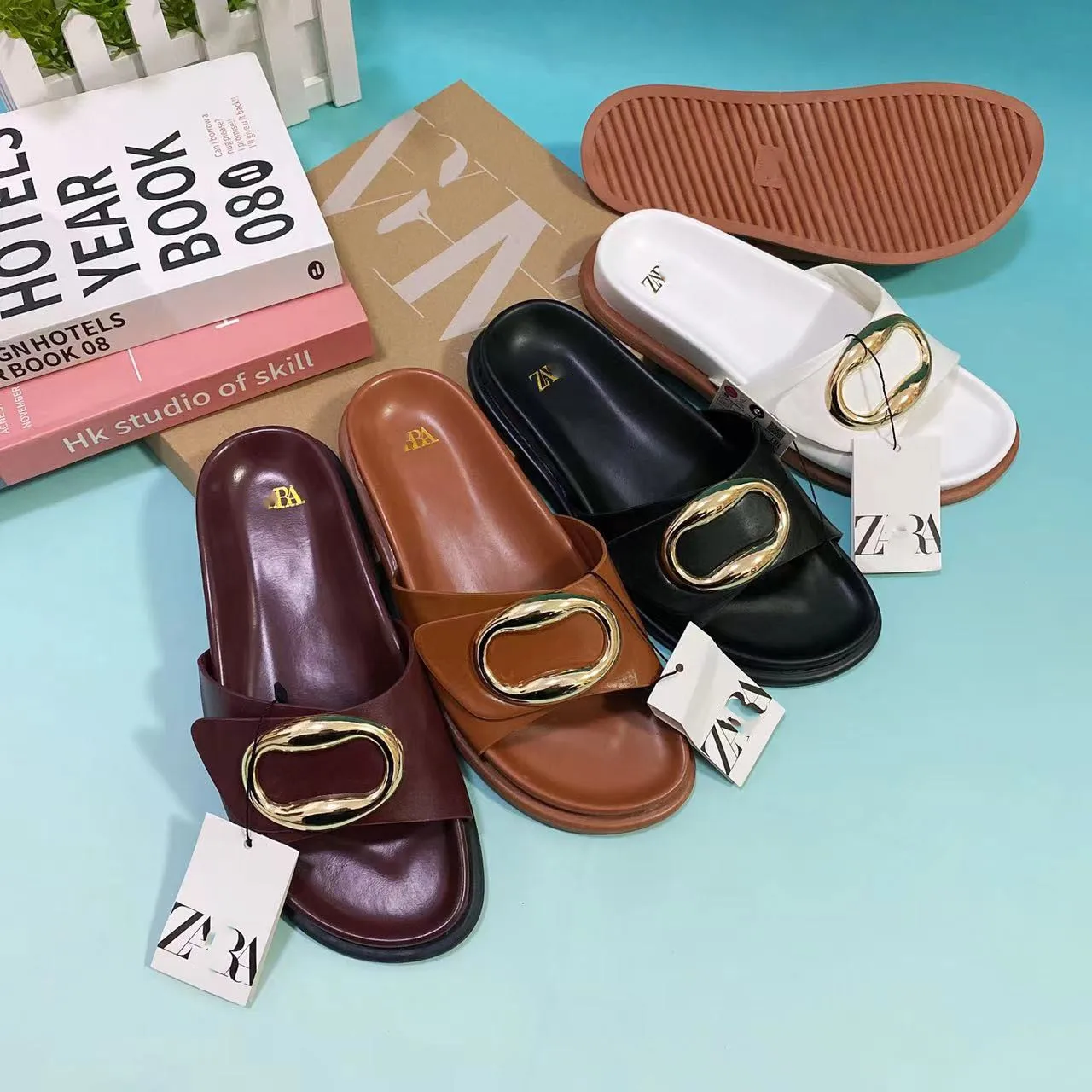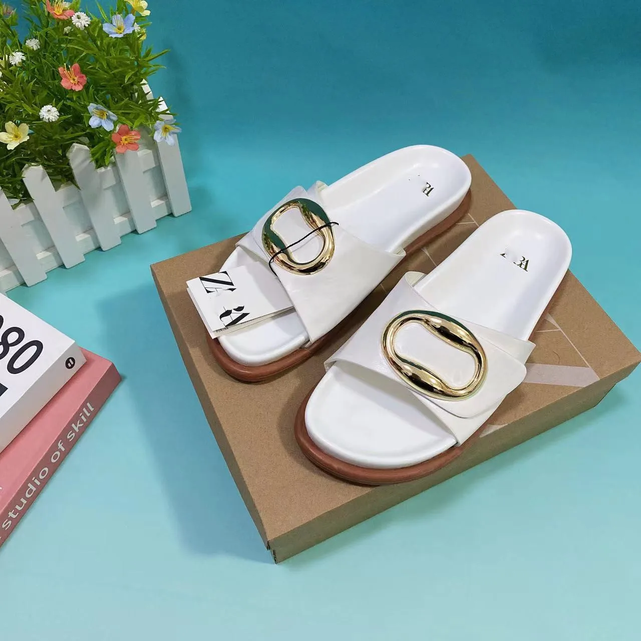 Summer New Metal Ring Vintage Style Women's slippers Wear Flat Fashion Sandals Plus Size