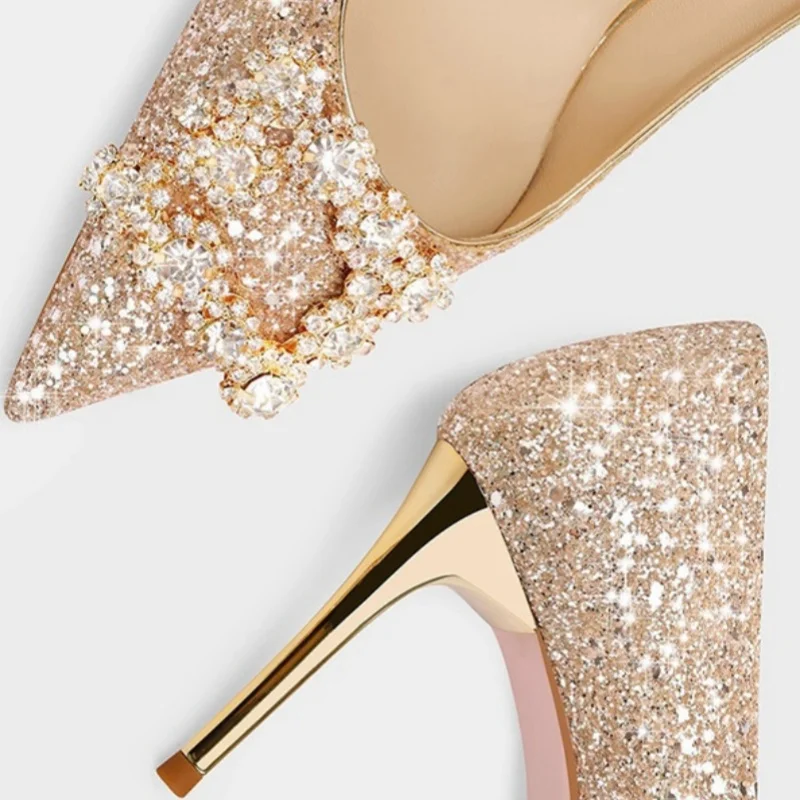 Spring Summer 3cm 6cm 8cm Luxury Shiny Women Wholesale Custom Female High Heels Bridal Bridesmaid Heel Sandals Gold Dress Shoes