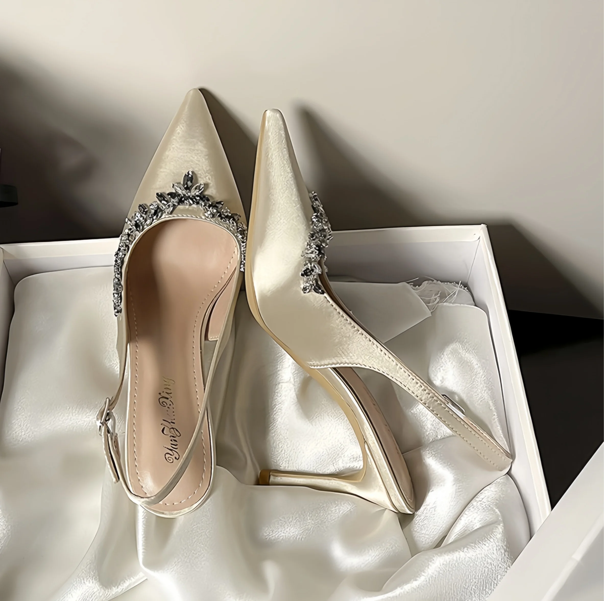 2026 New Lai Diamond High-Heeled Sandals for Women Sexy Outdoor Wedding Bride Dating Slingback Shoes Pointed Classic Factory