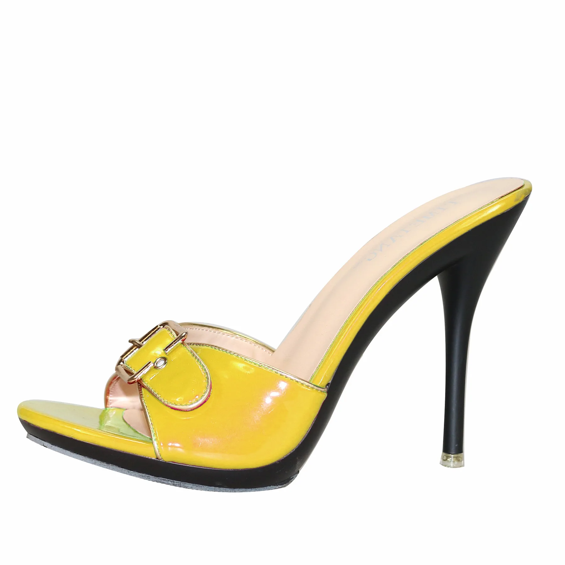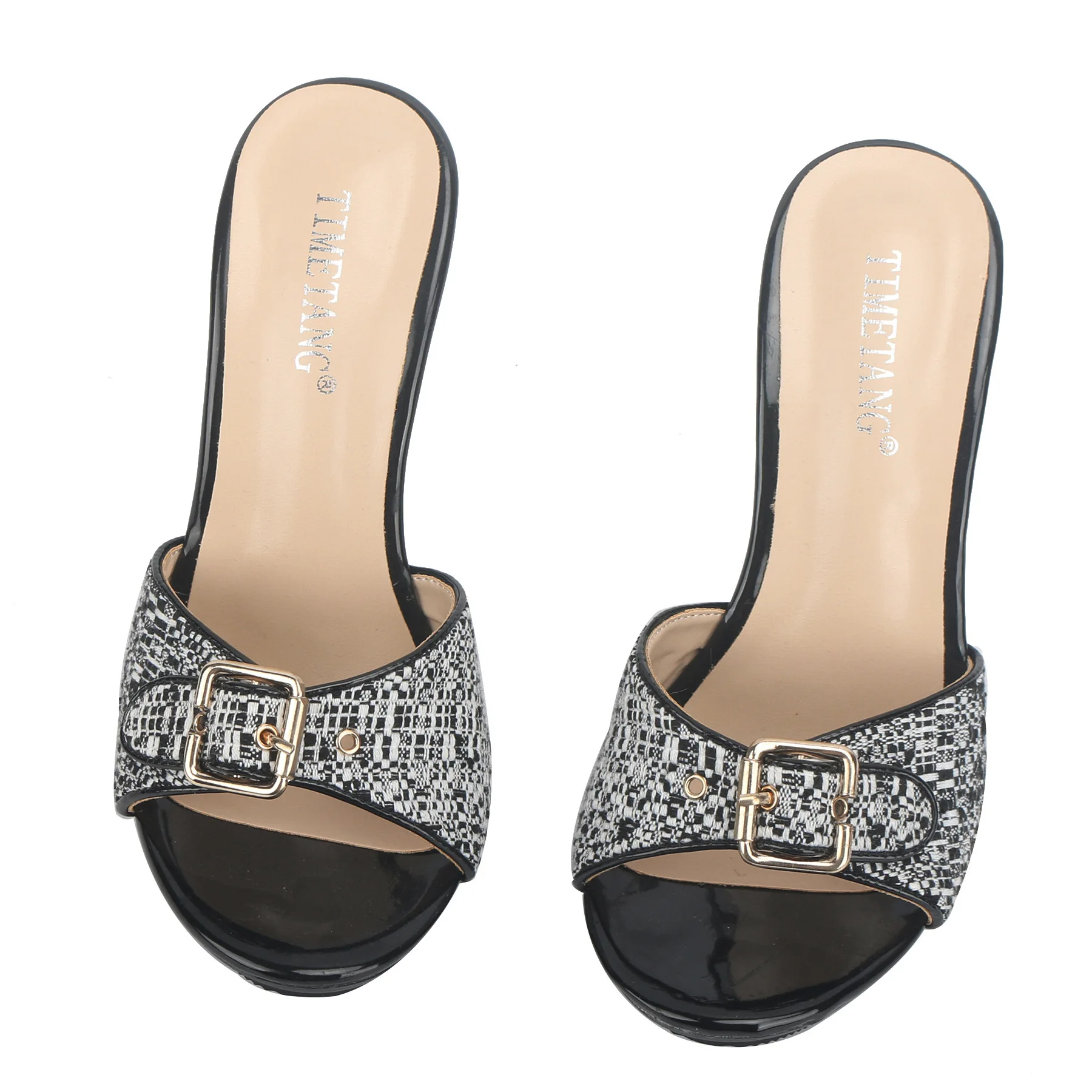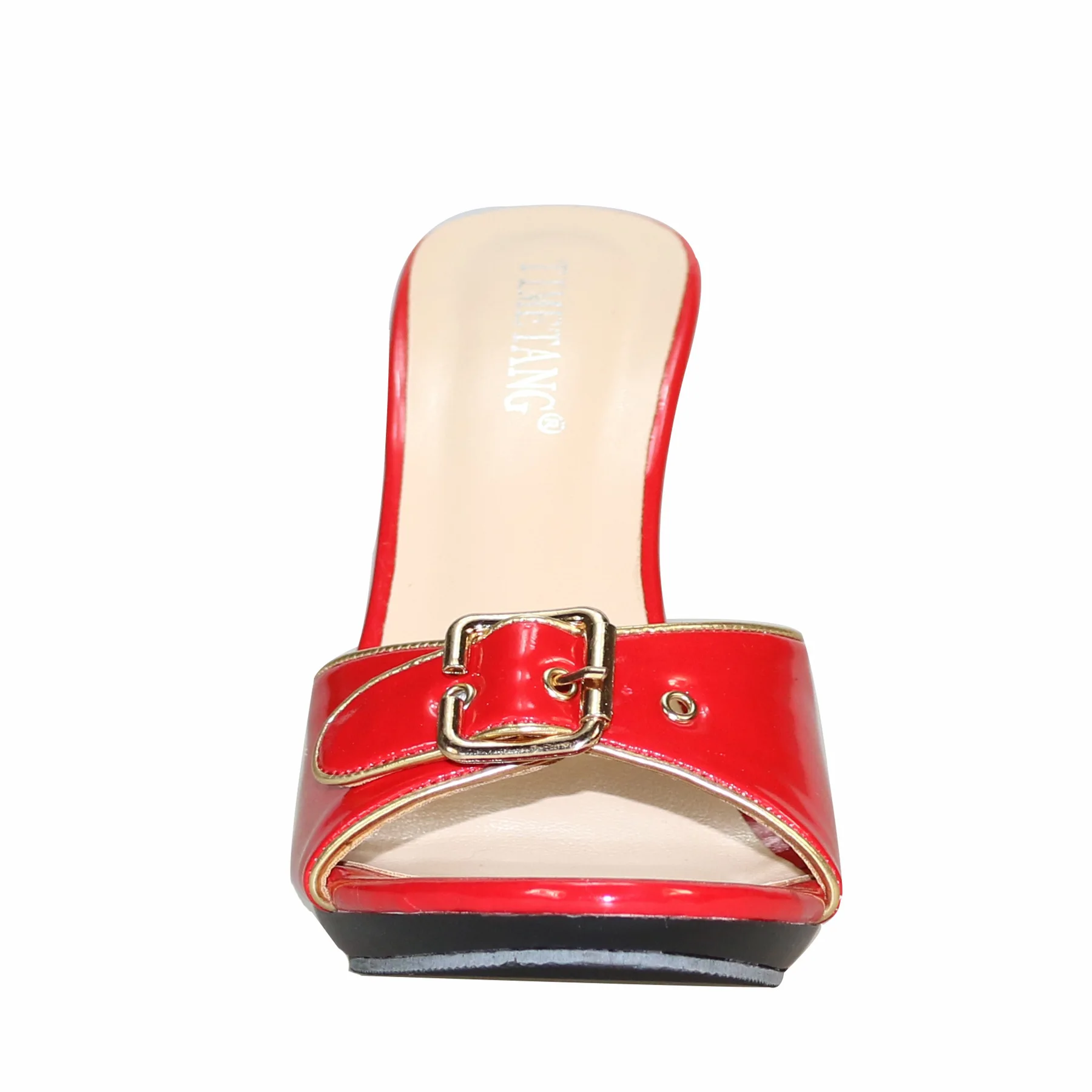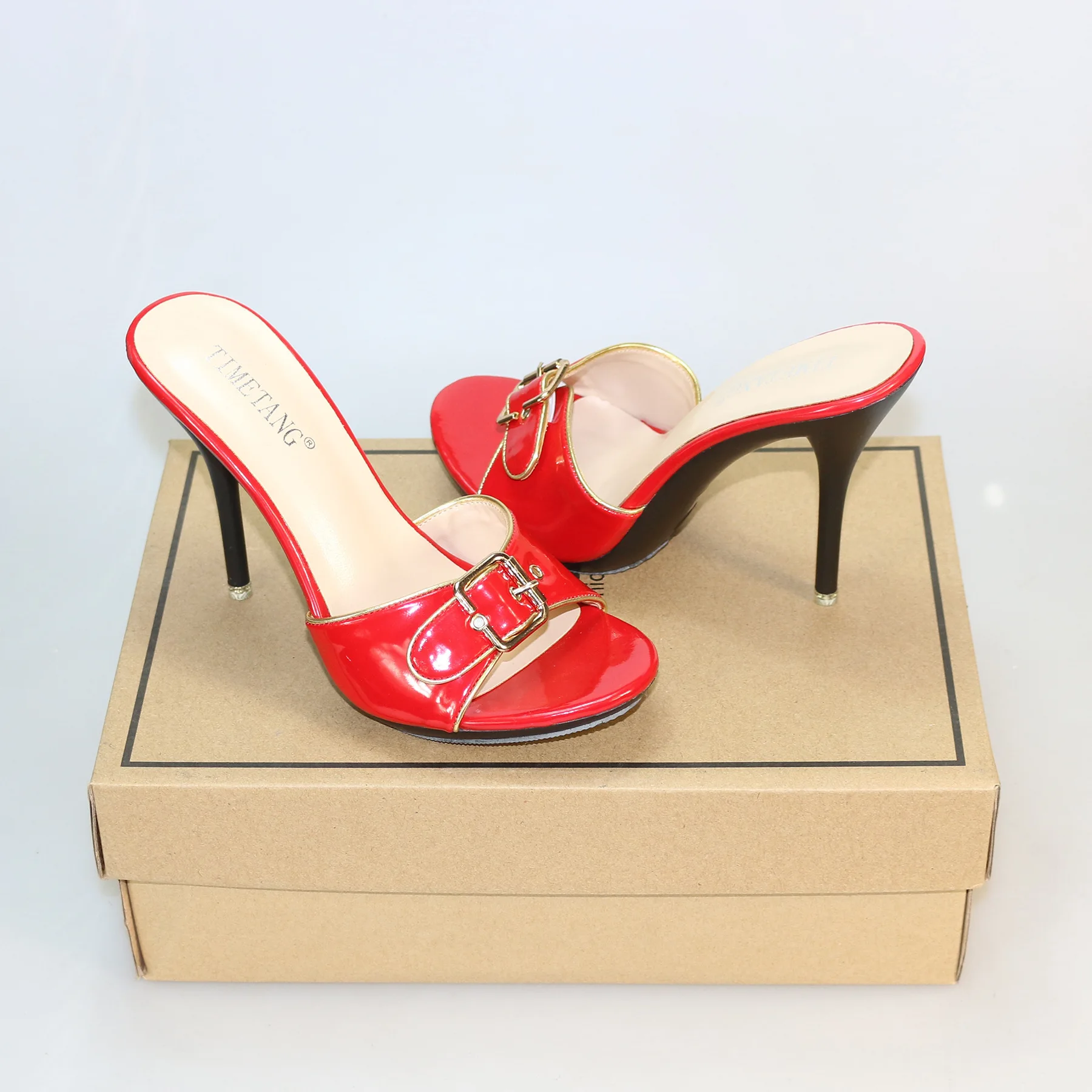 Summer New Style All Kinds of Thin Heel Round Head Open Toe Sexy Outside Wear Retro Belt Buckle One High Heel Cool Slipper