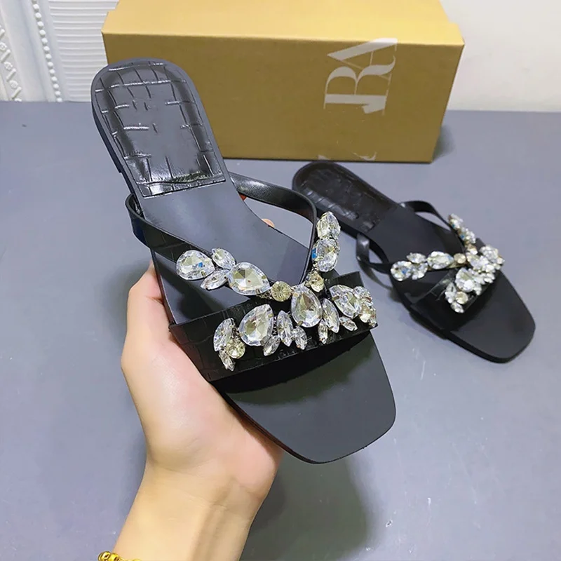 Summer Designer Luxury Shoes Women Black Diamond Wear Outside Act the Role of Flat Sandals Joker Comfortable Ladies Flat Shoes