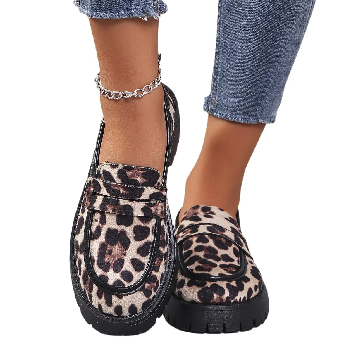 2026 European American Fashion Women's Ballet Loafers New Color Combination Thick Bottom Head Mid-Mouth Leather Lining Big Size