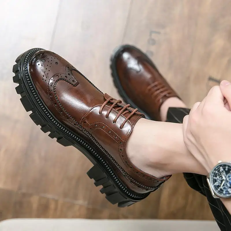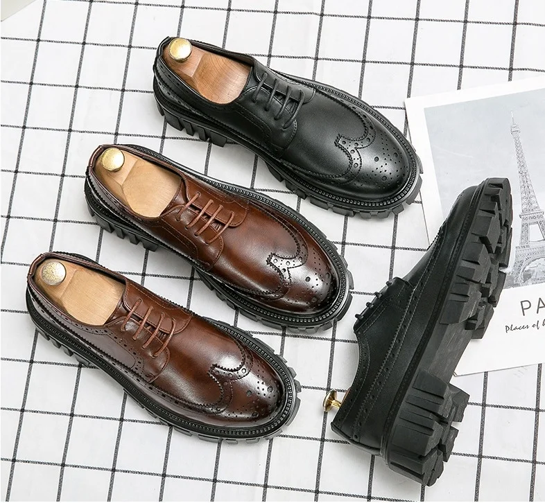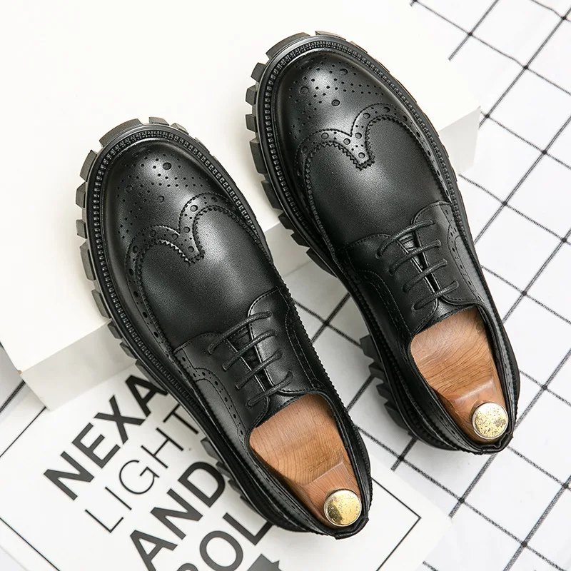 Light Mesh United States Thick Sole Carved Casual Autumn Work Boots Anti-slip Wear-resistant Office Wedding Dress Shoes