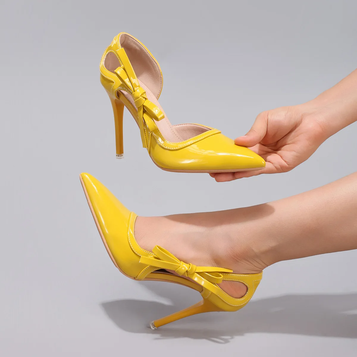Summer French Fashion Bow Heels Sexy Party Dress Shoes Pointy Side Empty Plump Size Stiletto Sandals
