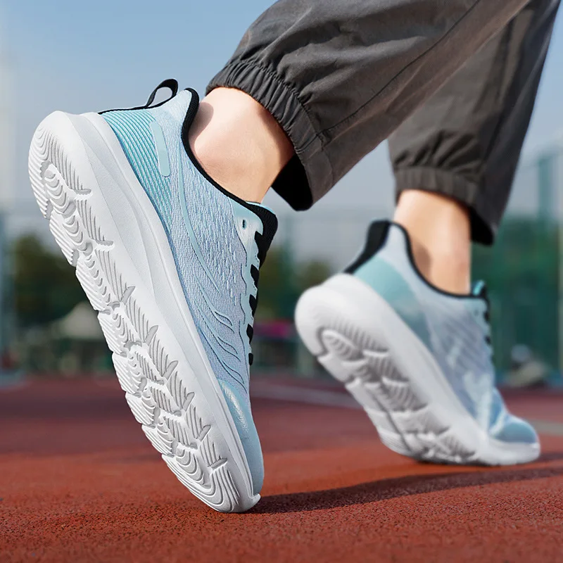 Cross-border Large Size 46 Men's Youth Trendy Toe Sports Shoes Breathable Flying Woven PU Outsole Stripes Lightweight Shoes