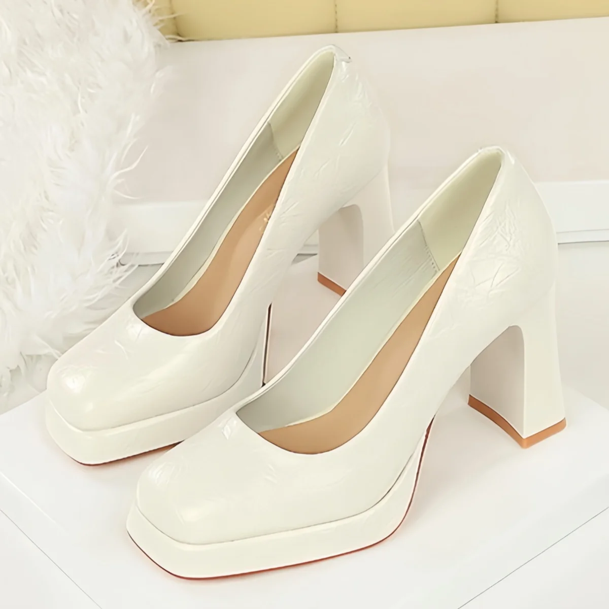Women's Office Dress Pumps Square Toe Soft Shallow Mouth Chunky Fashion Breathable Autumn Peep Toe Fashion Platform Heels