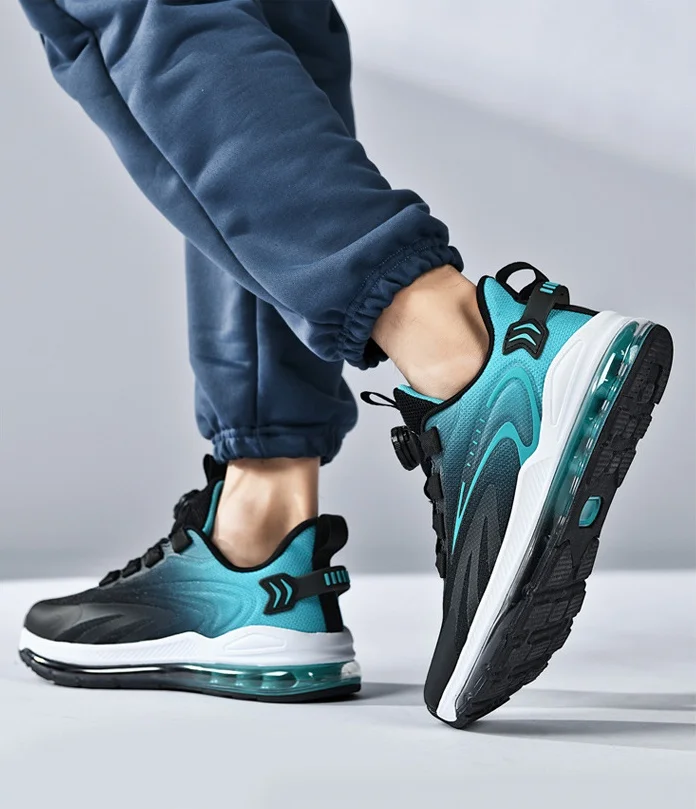 Custom logo Running Shoes Low Moq air Cushion Shock-absorbing Rotating Button Mesh Surface Breathable Men's Running Sports Shoes